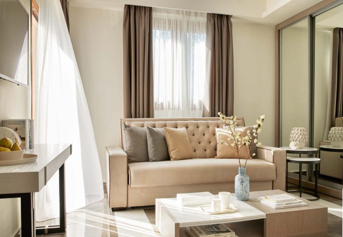 Цей ексклюзивний готель "все включено" на Халкідіках пропонує 234 елегантних та просторих номери й люкси, розташовані в 9 будівлях, з'єднаних чудовими ландшафтними садами. Завдяки широкому вибору преміальних номерів та розважальних послуг, від місцевої кухні до розважальних програм, гості зможуть насолодитися дивовижними краєвидами гори Олімп, а також блакитною блакитью Егейського моря.