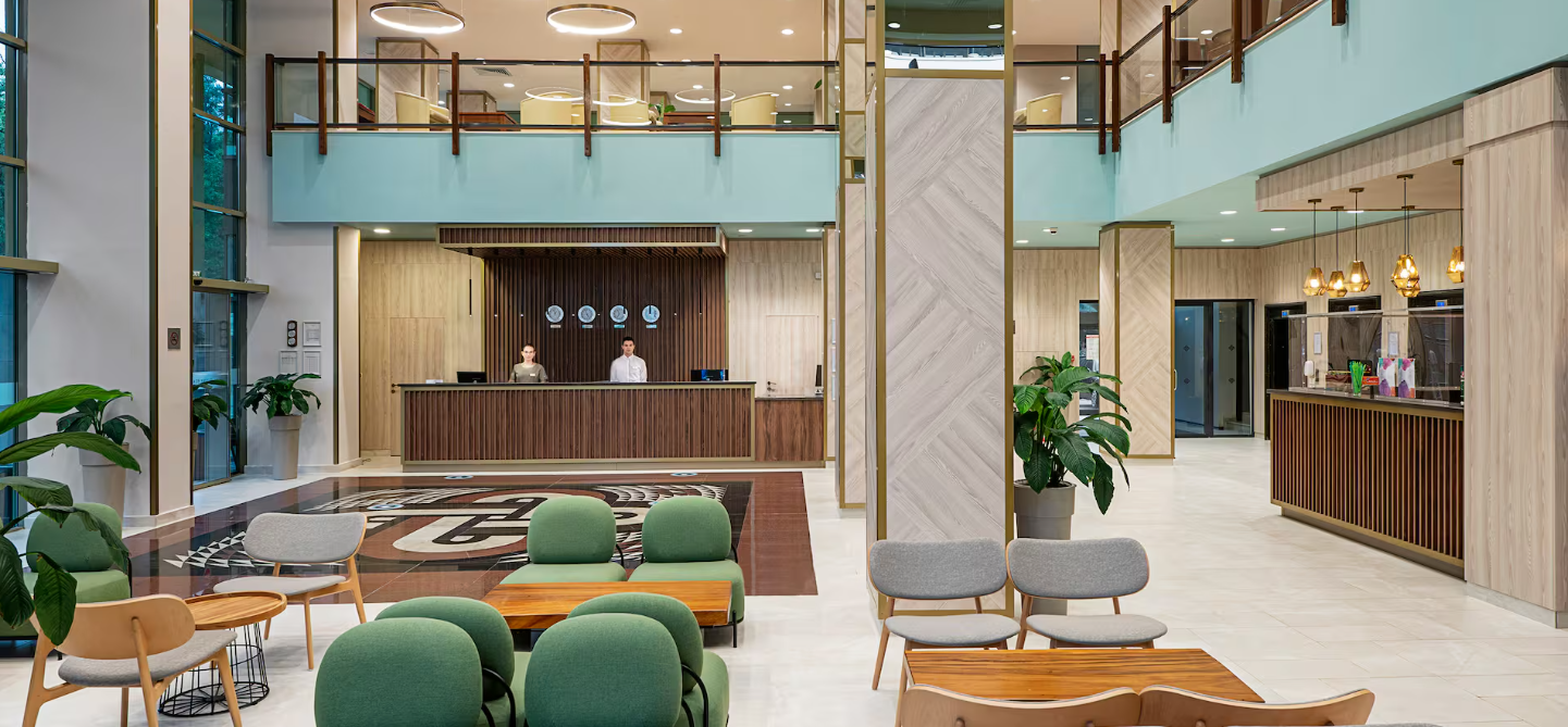 Кожна з головних будівель має власний вестибюль зі стійкою реєстрації, лобі-баром і головним рестораном.