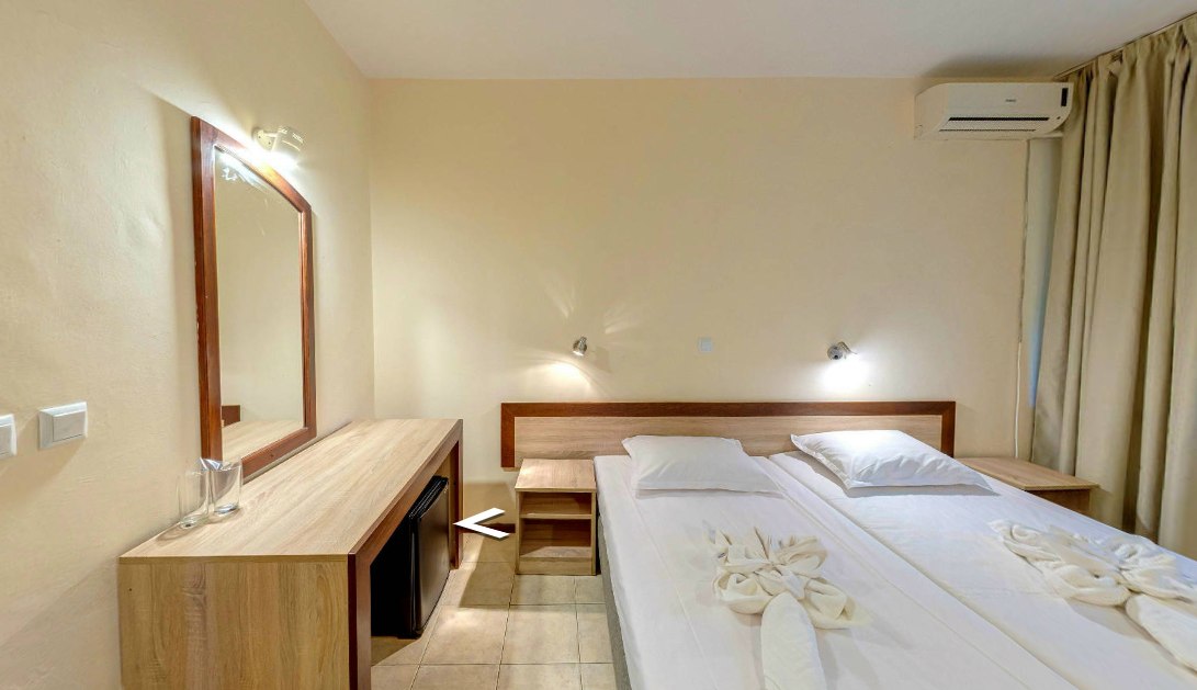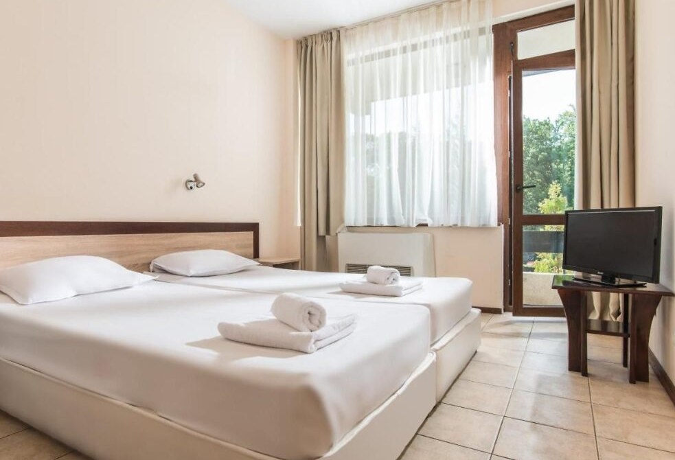 Невеликий готель в оточенні зелені поруч з основними розвагами курорту. Будівля складається з двох крил на трьох поверхах, з'єднаних лобі-баром, і має 153 номери Від входу до готелю гості можуть насолодитися затишним лобі-баром, просторою зоною відпочинку до рецепції, а в центрі будівлі знаходиться гарний англійський внутрішній дворик. Дозволено розміщення з тваринами 20 BGN за ніч. Готель відкритий у 1984 р., остання реновація проводилась у 2024 році.