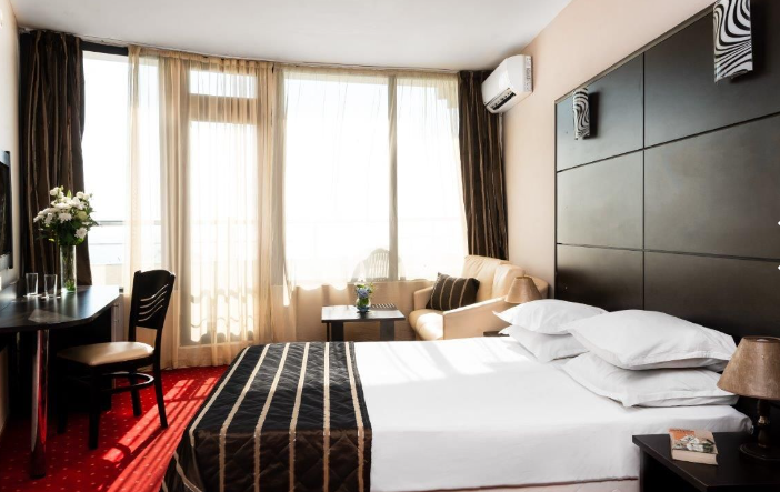 Це сучасний і зручно обладнаний готель, має ідеальне розташування поруч з пляжем, на 20-25 метрів від головної алеї. Сходинки ведуть до піщаного пляжу