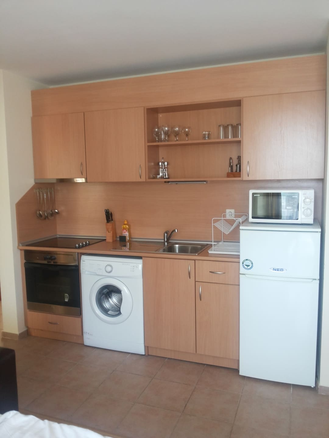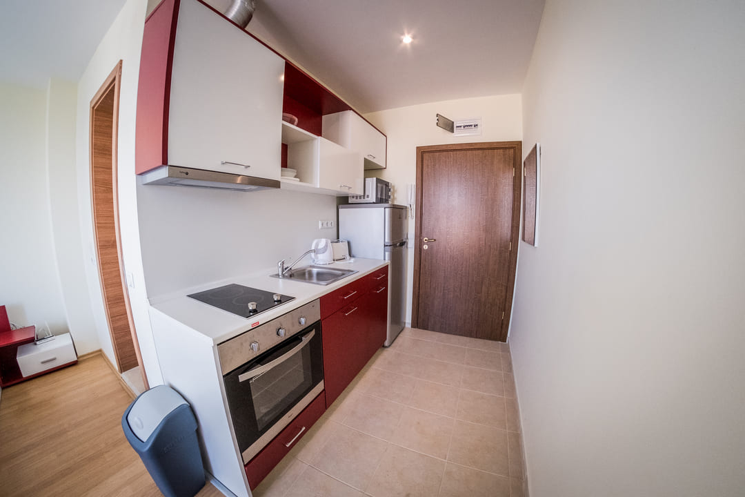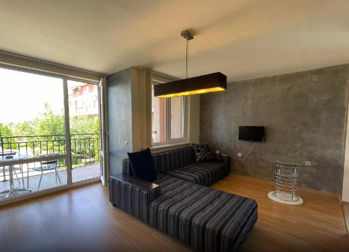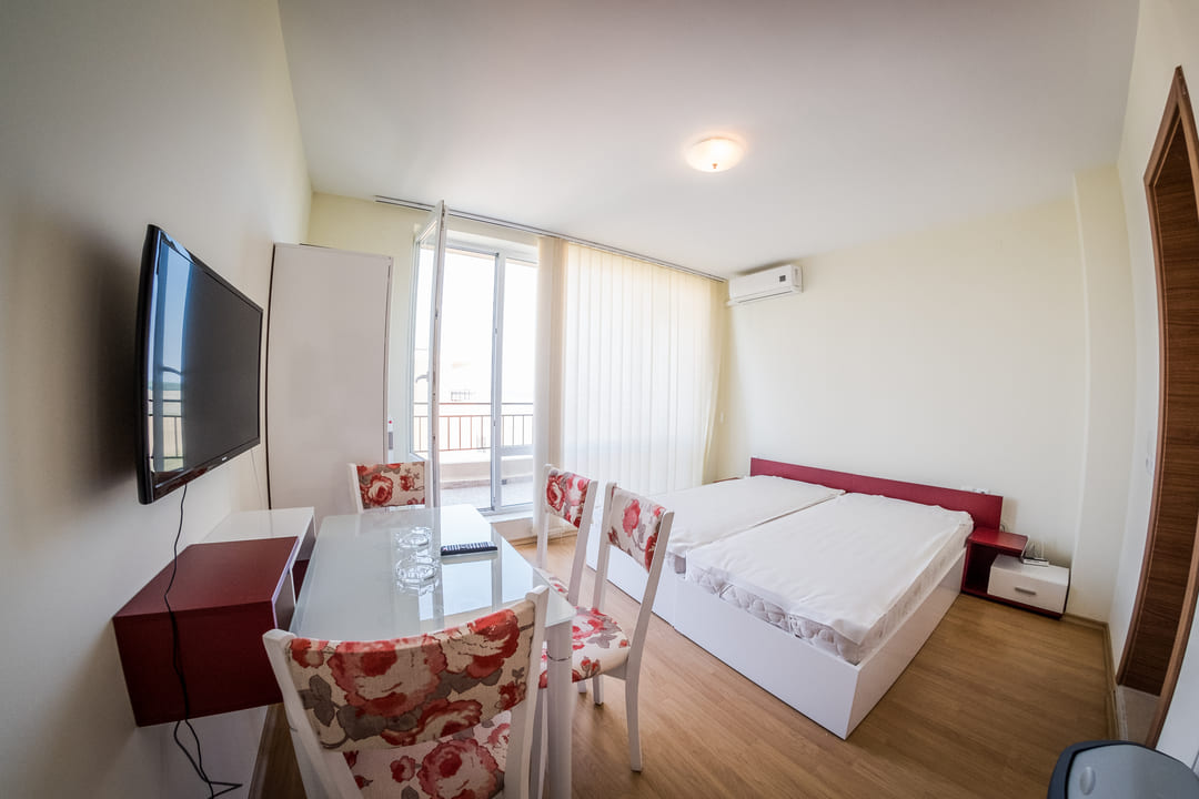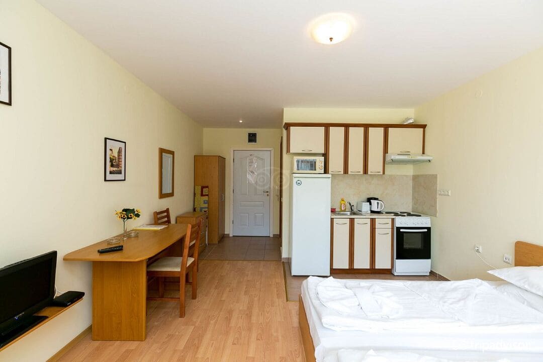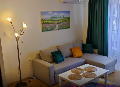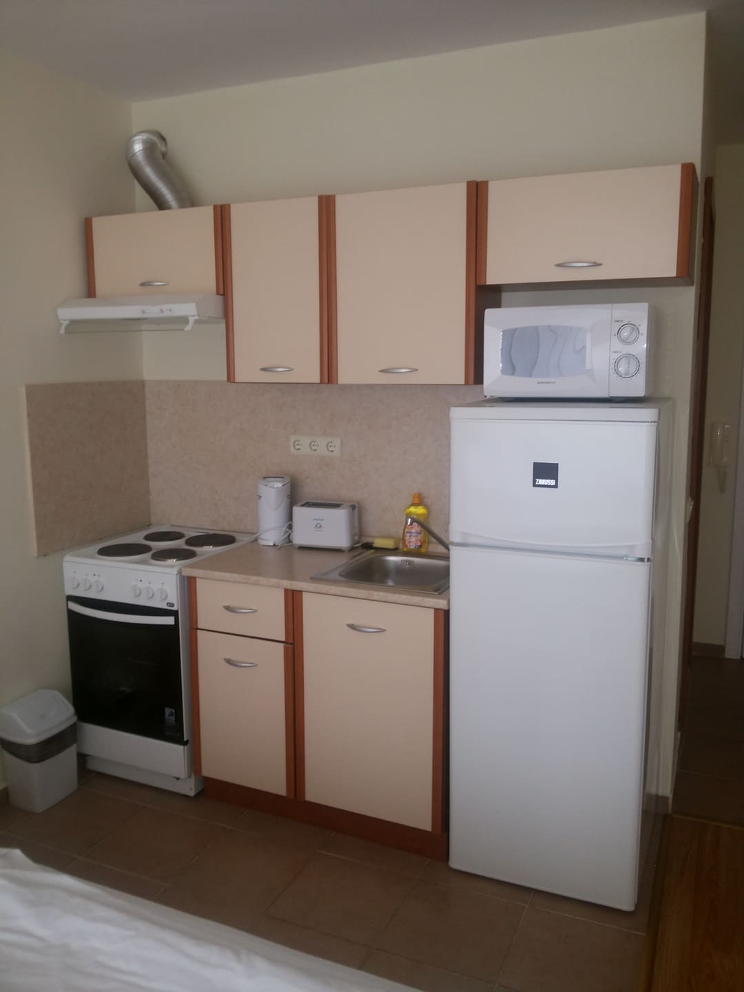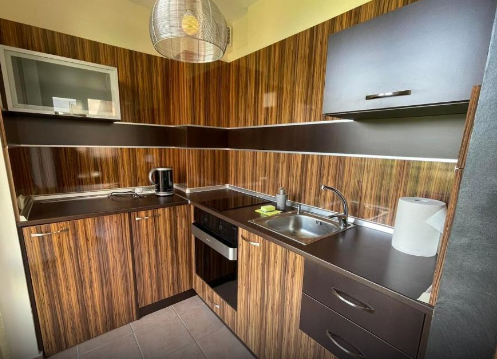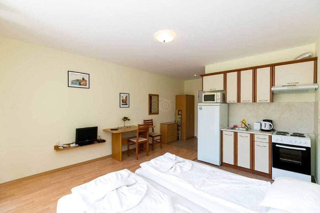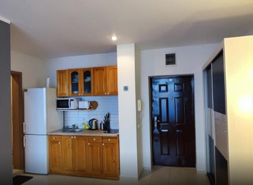Апартамент складається з двох кімнат - спальні та вітальні з облаштованою кухнею і диваном.