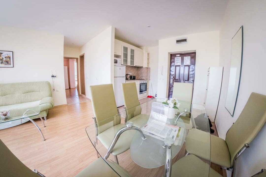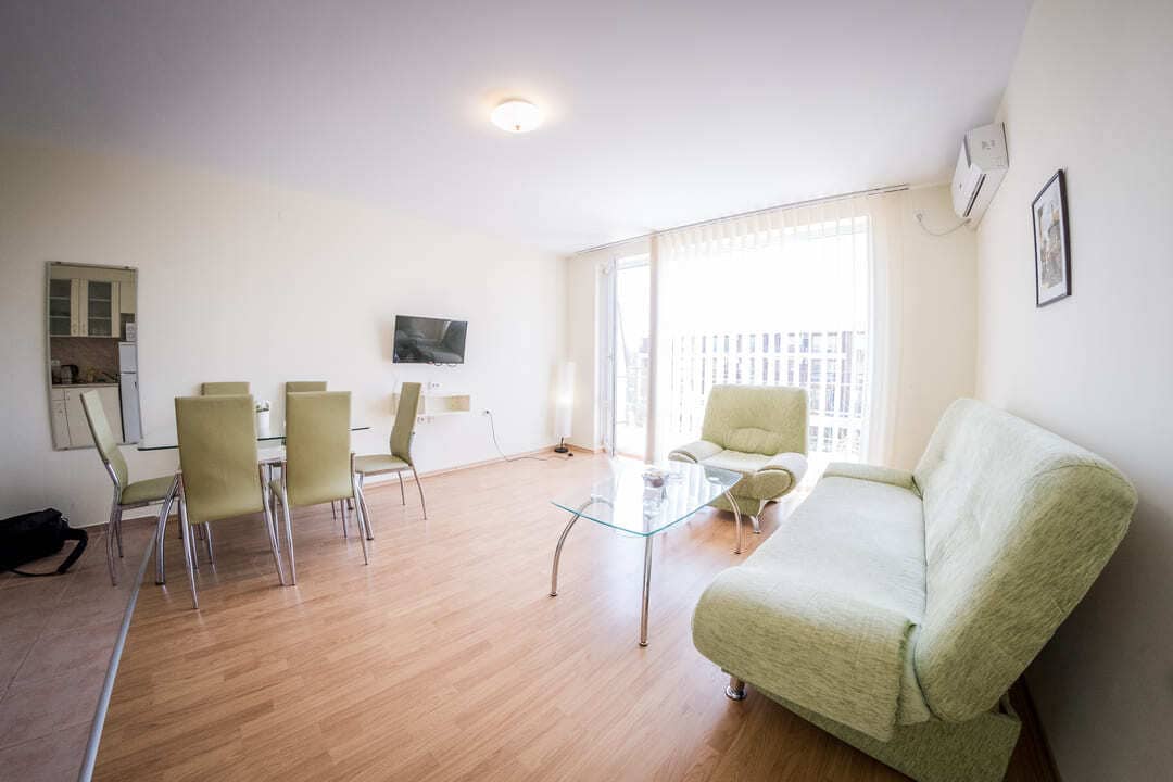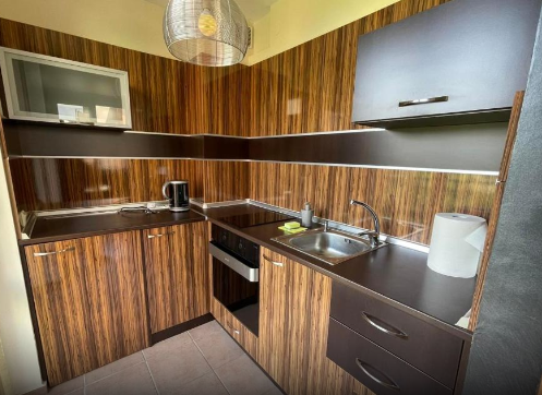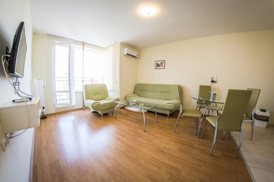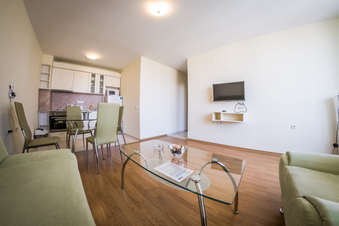 Апартамент складається з трьох кімнат - 2 спальні та вітальня з облаштованою кухнею і диваном.