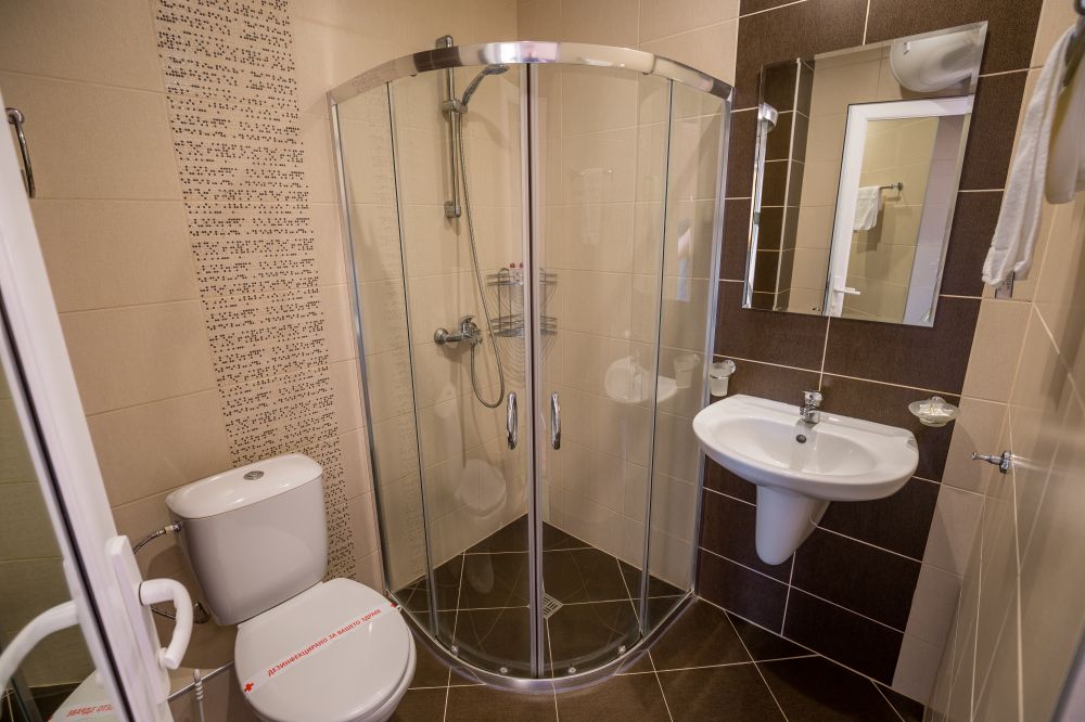 Площа близько 20 м2, ванна кімната, туалет, балкон, кондиціонер, телевізор, холодильник, спальня з двома односпальними ліжками, розкладне крісло.