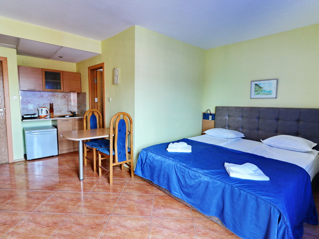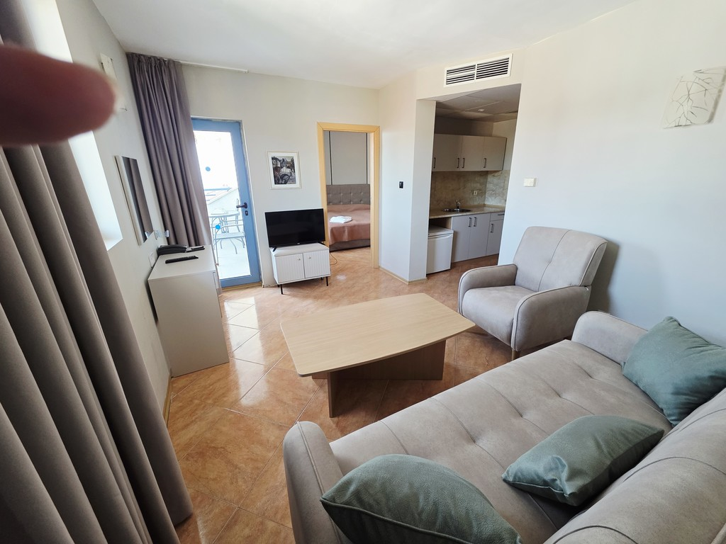 Включає спальню та окрему вітальню з диваном-ліжком і міні-кухнею.