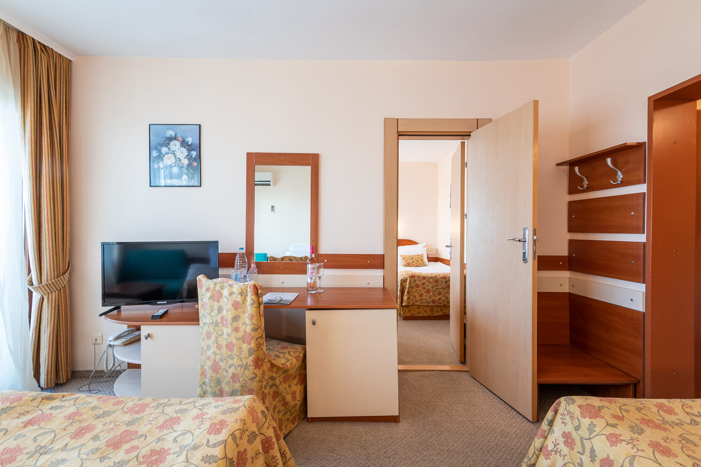 Сімейні номери в готелі є кількох типів. Це або одна велика кімната з візуально відокремленою зоною вітальні, або 2 окремі кімнати по типу апартаменту або 2 стандарти-конект.