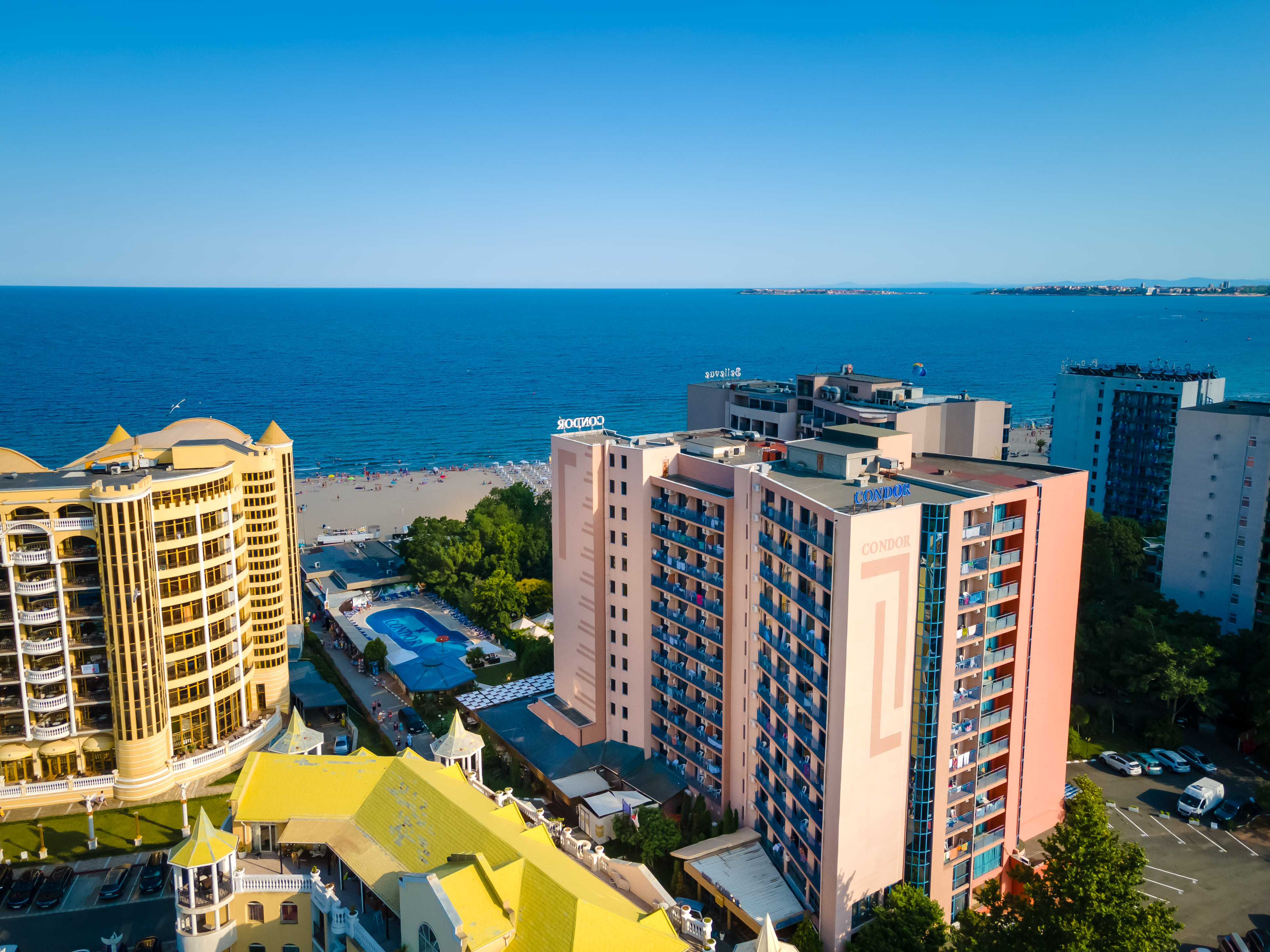 Готель MPM Condor розташований лише за кілька метрів або рівно за 88 кроків від найкращого піщаного пляжу болгарського узбережжя Чорного моря. Розташований у тихій частині жвавого курорту Сонячний берег.