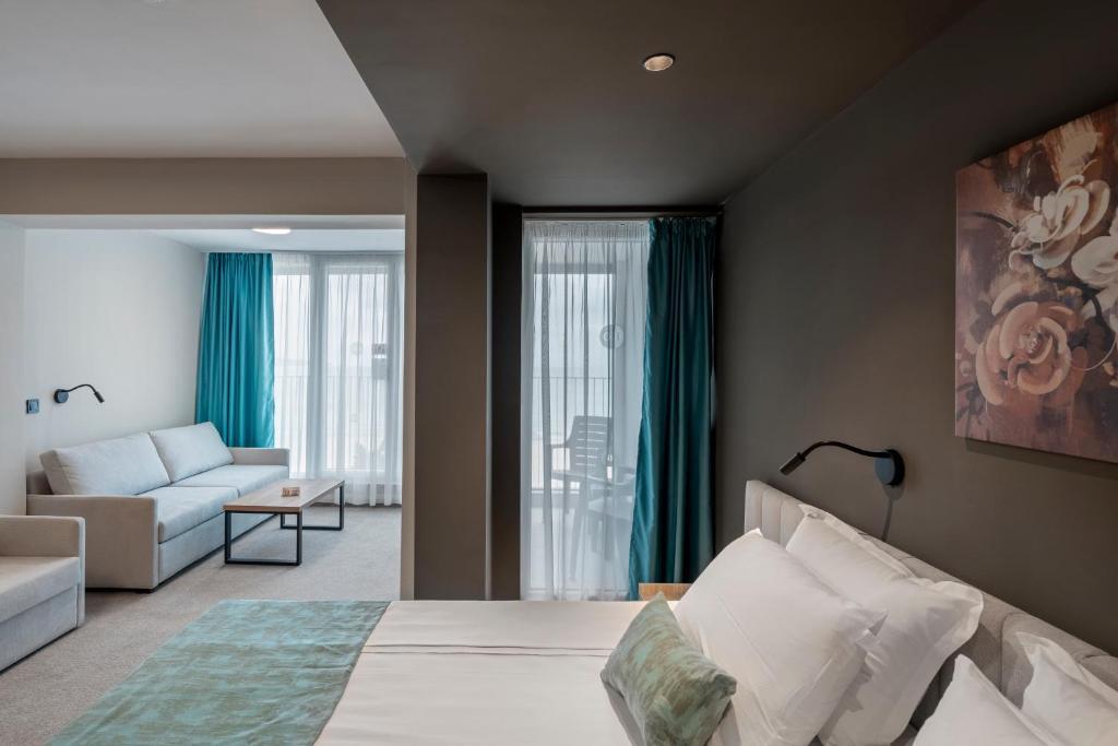У номері вітальня з розкладним диваном і одна окрема спальня з двоспальним ліжком,