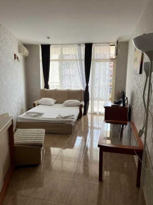 Вітальня і спальня, розділені дверима. В спальні одне двоспальне ліжко. Можливість поставити ще одне ліжко