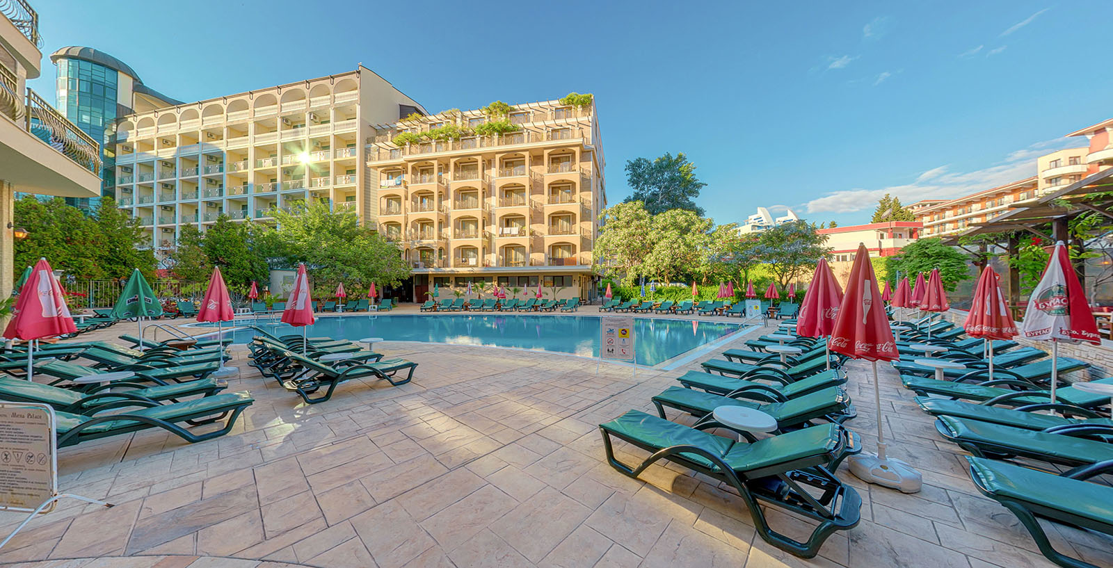 Бар-ресторан розташований на терасі біля басейну. Він пропонує алкогольні та безалкогольні напої від болгарського виробника та 7 видів коктейлів (по одному на кожен день), які входять до пакету «все включено».