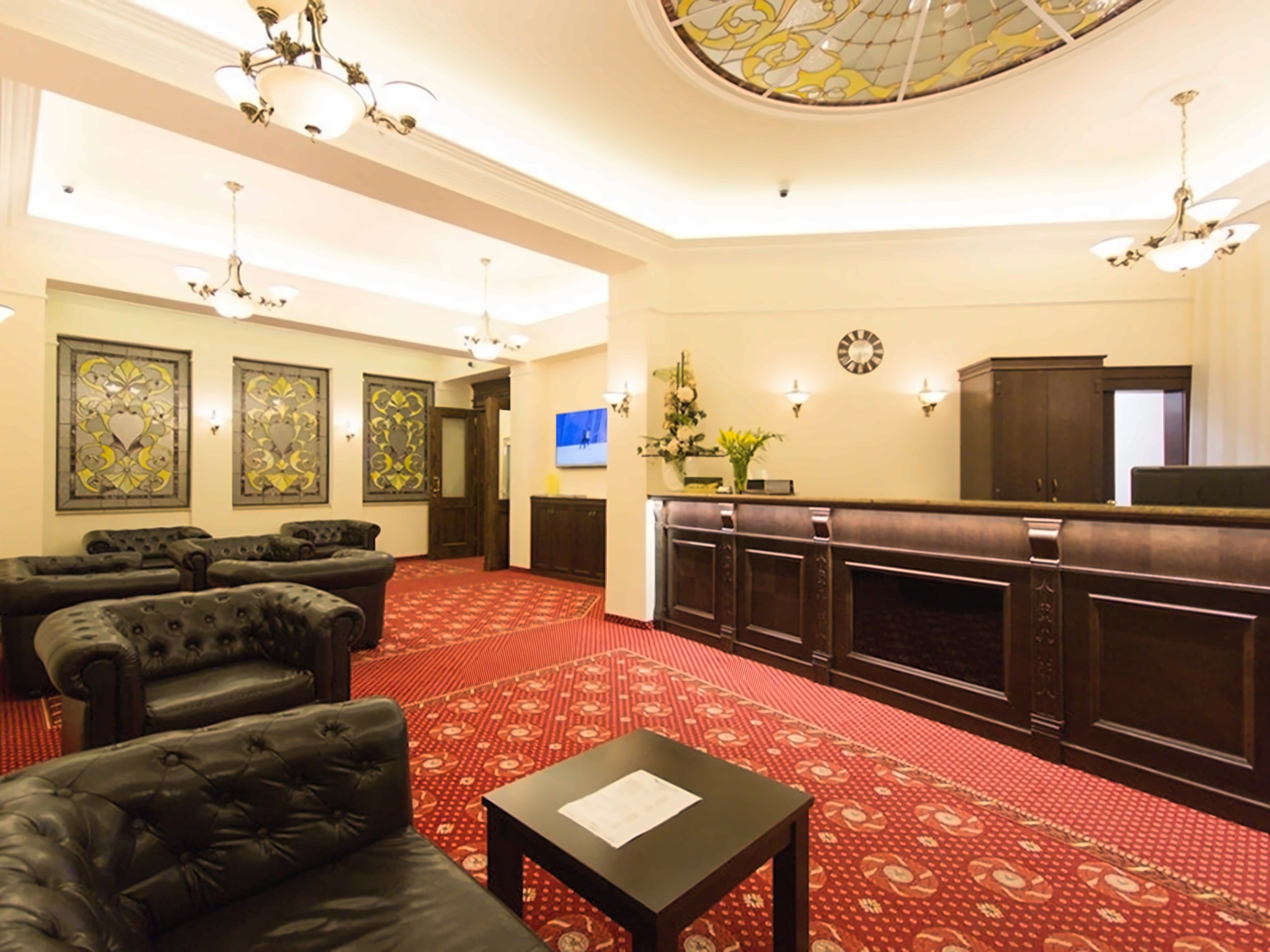 Готель та номери оформлені в англійському стилі , також має власний бальнеологічний центр, де проводяться всі класичні курортні процедури, а також медичні обстеження. Наприкінці 2021 року готель повністю модернізував та відкрив нову зону Spa & Wellness. Гостям готелю надається вільний доступ до всіх лікувальних та Wellness-пакетів.