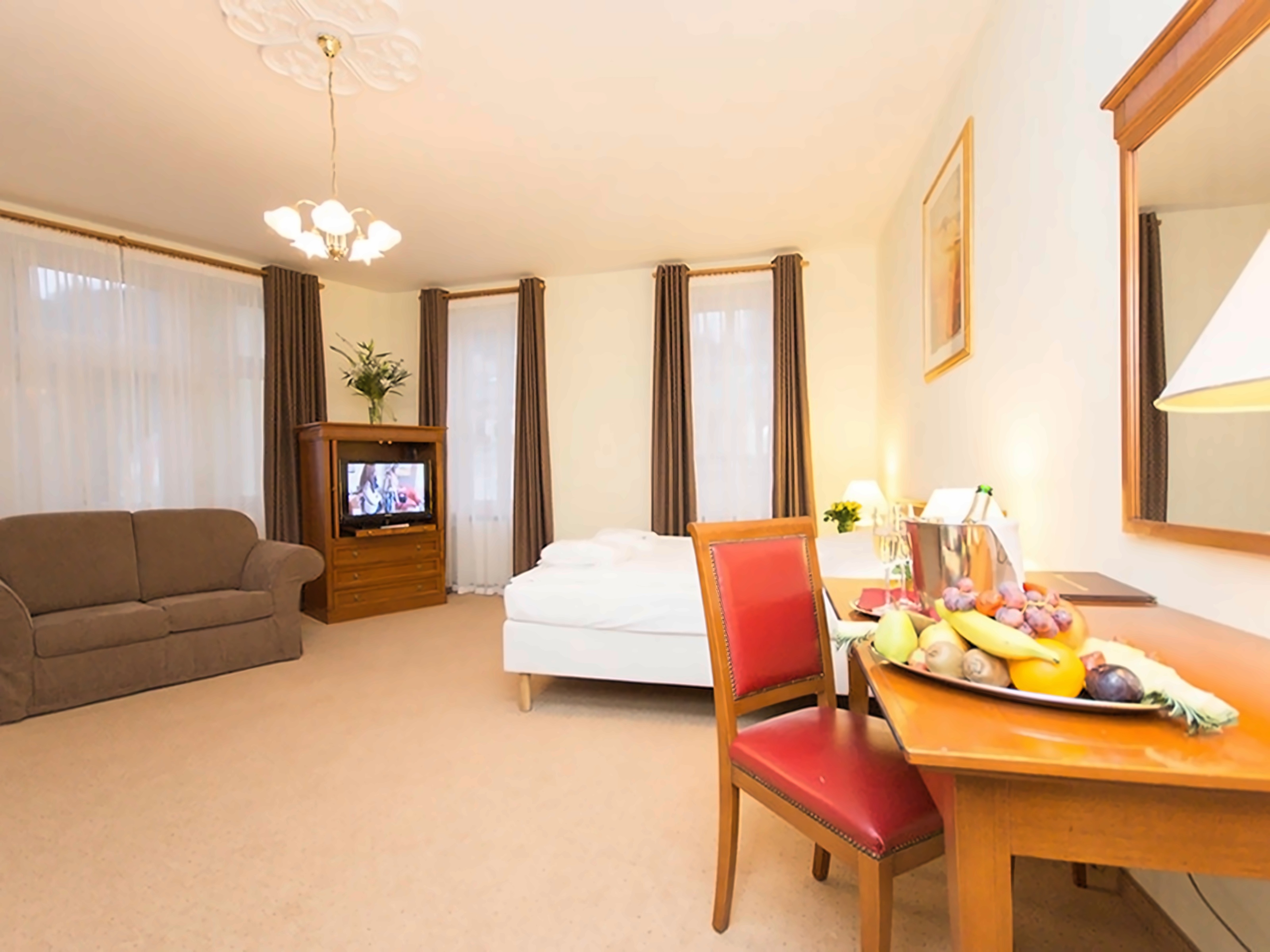 Готель побудовано о 1876 році. Розташован в історичному центрі в декількох хвилинах від мінеральних джерел Colonnade.  Ренововація проводилась у 2015 році, а наприкінці 2021 року готель повністю модернізував та відкрив нову зону Spa & Wellness. Якісний сервіс, привітний персонал, зручне розташування  - це все запорука гарного відпочинку.
