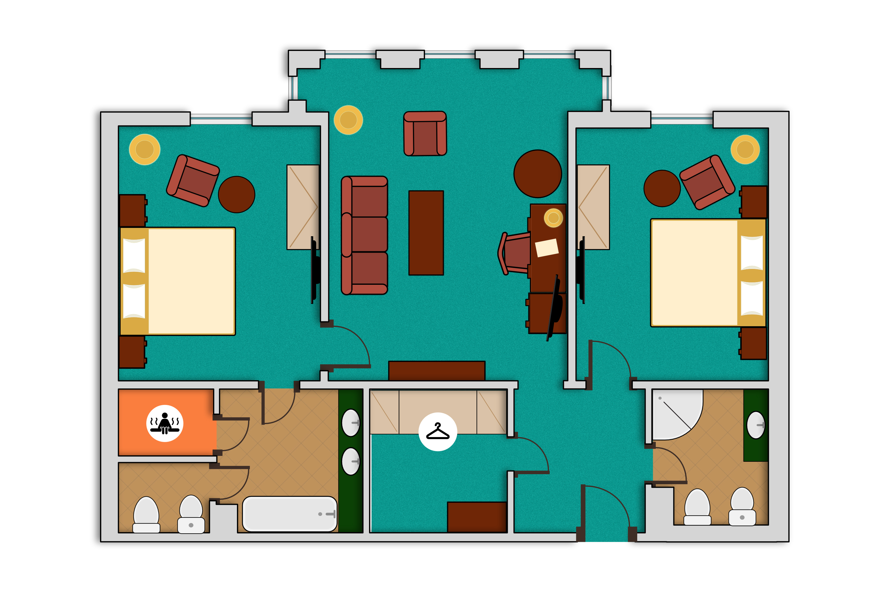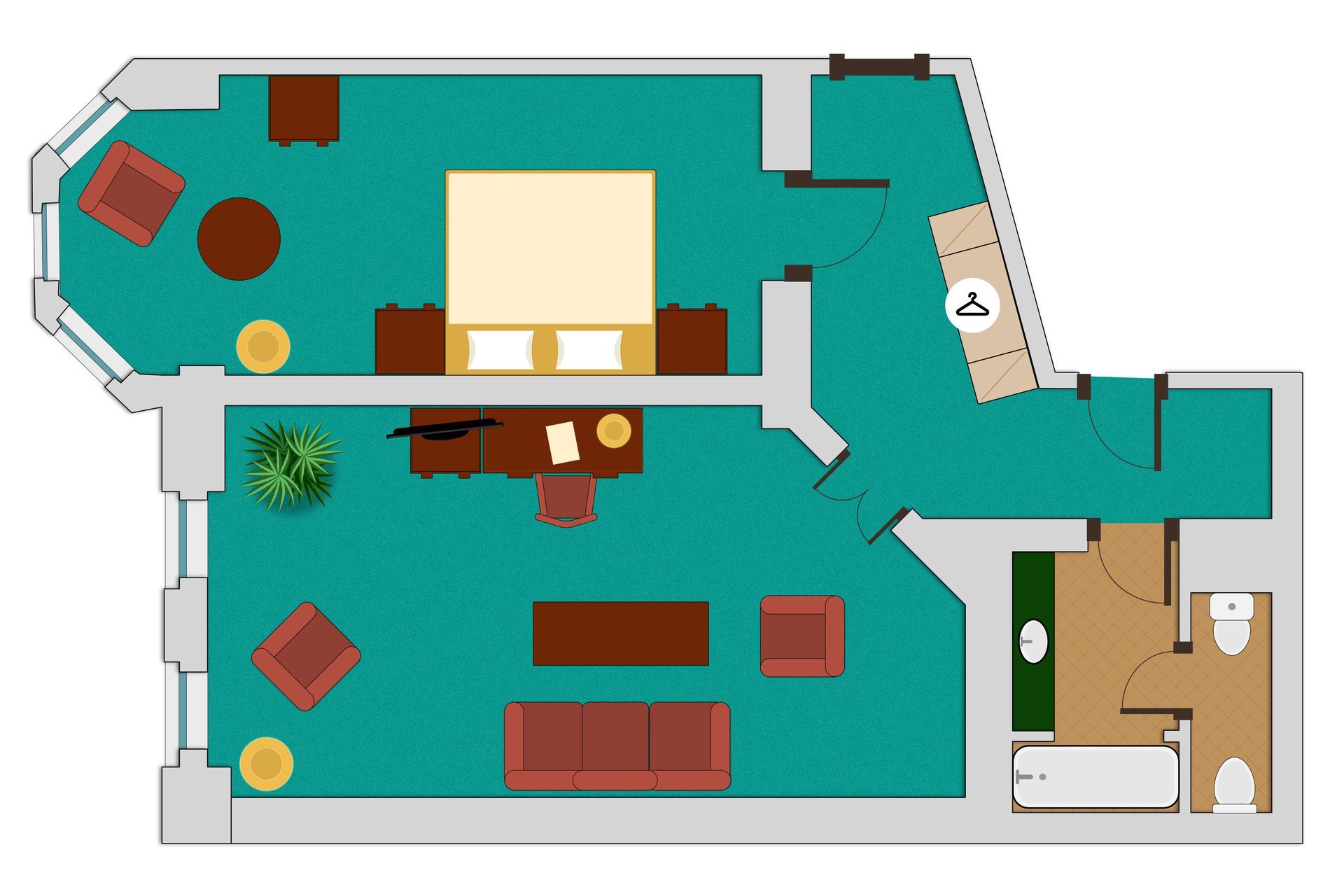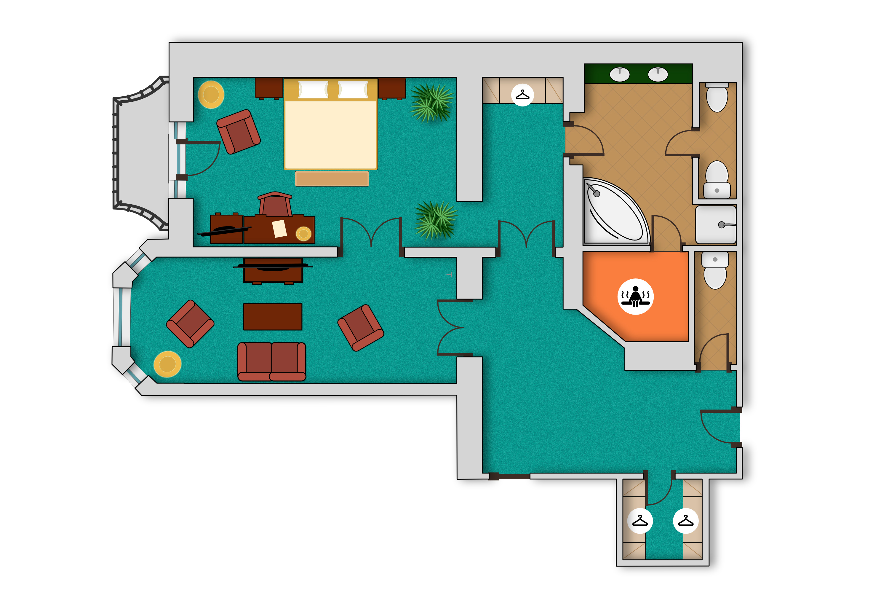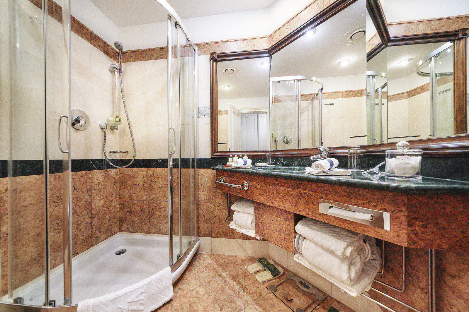Можливо з'єднати з Exclusive Suite. Окрема гостьова вбиральня. Ванна кімната із джакузі. Також у номері є сауна.