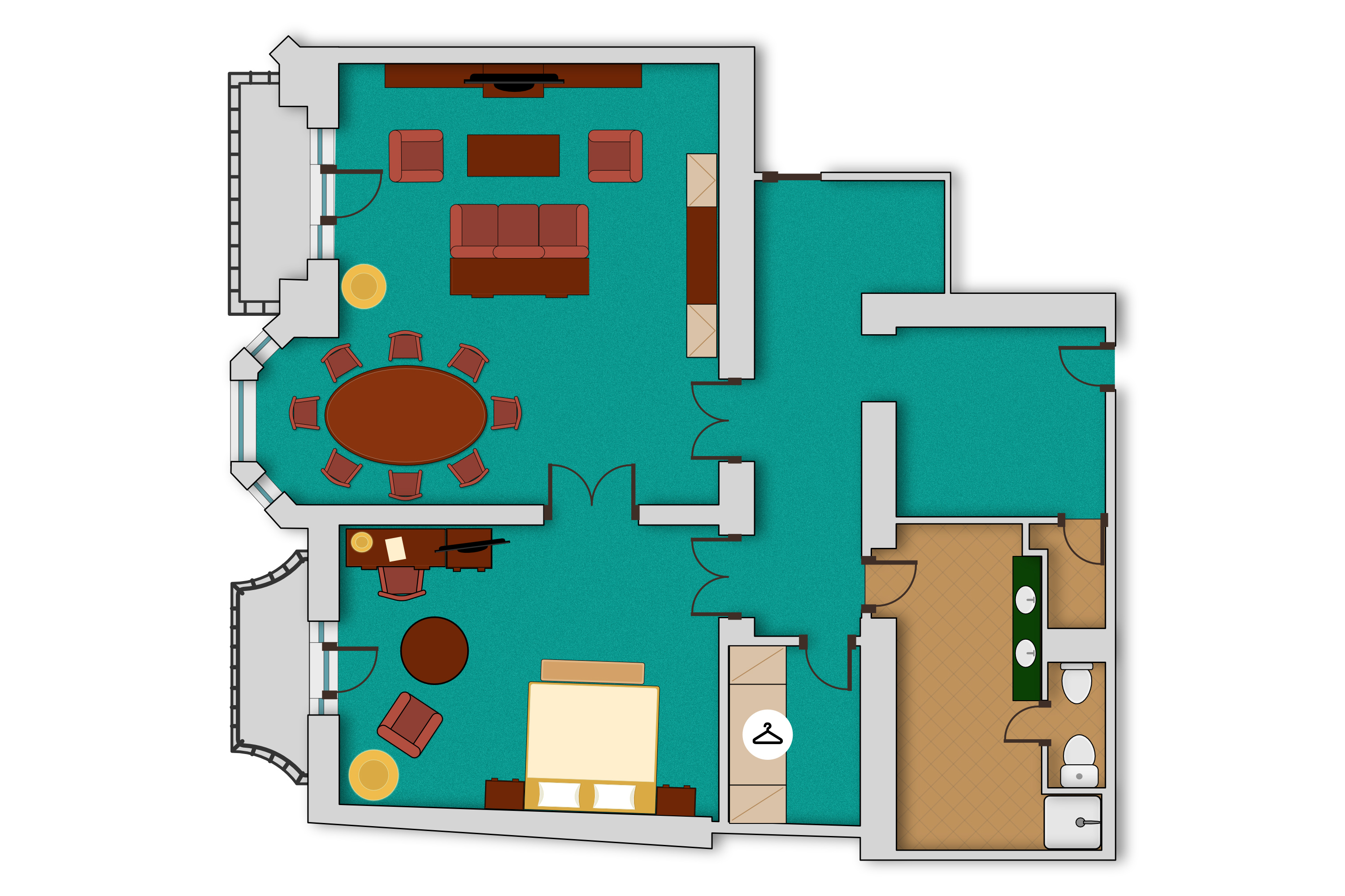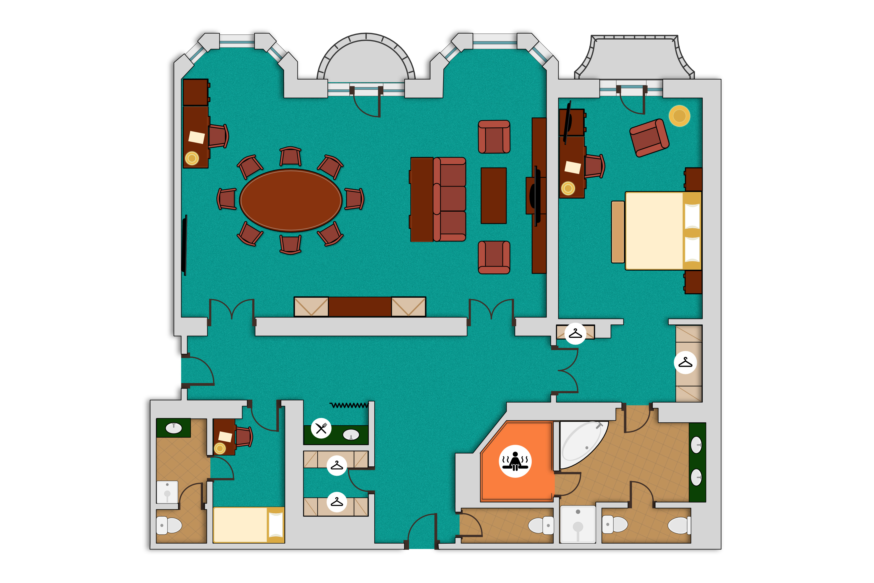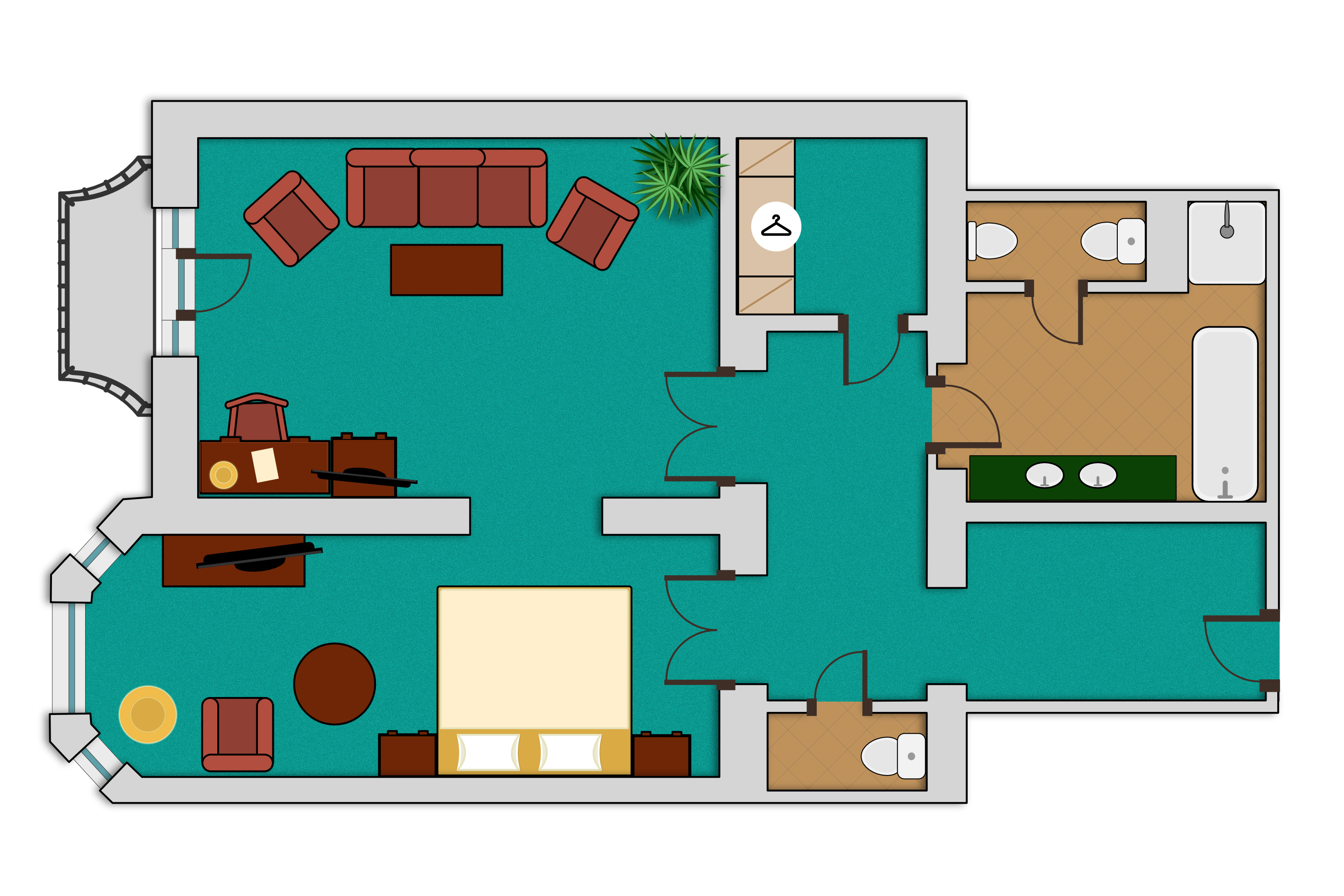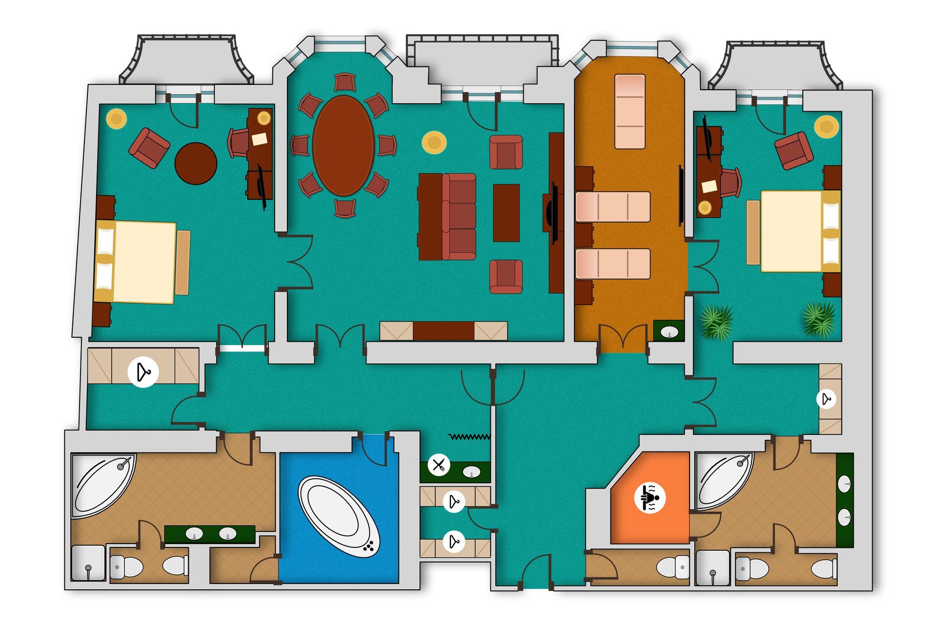 Можливо з'єднати з Exclusive Suite. Окрема гостьова вбиральня. Ванна кімната із джакузі. Також у номері є сауна.