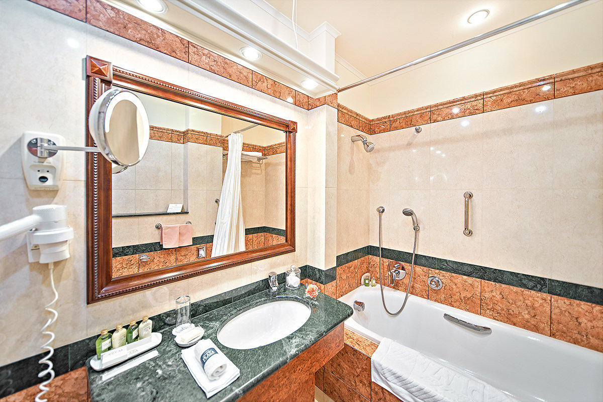 Ванна кімната з ванною та душем, деякі номери з паровою кабіною та вбудованим дзеркальним TV / окремий туалет / біде.