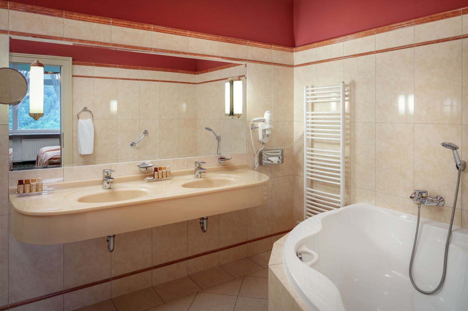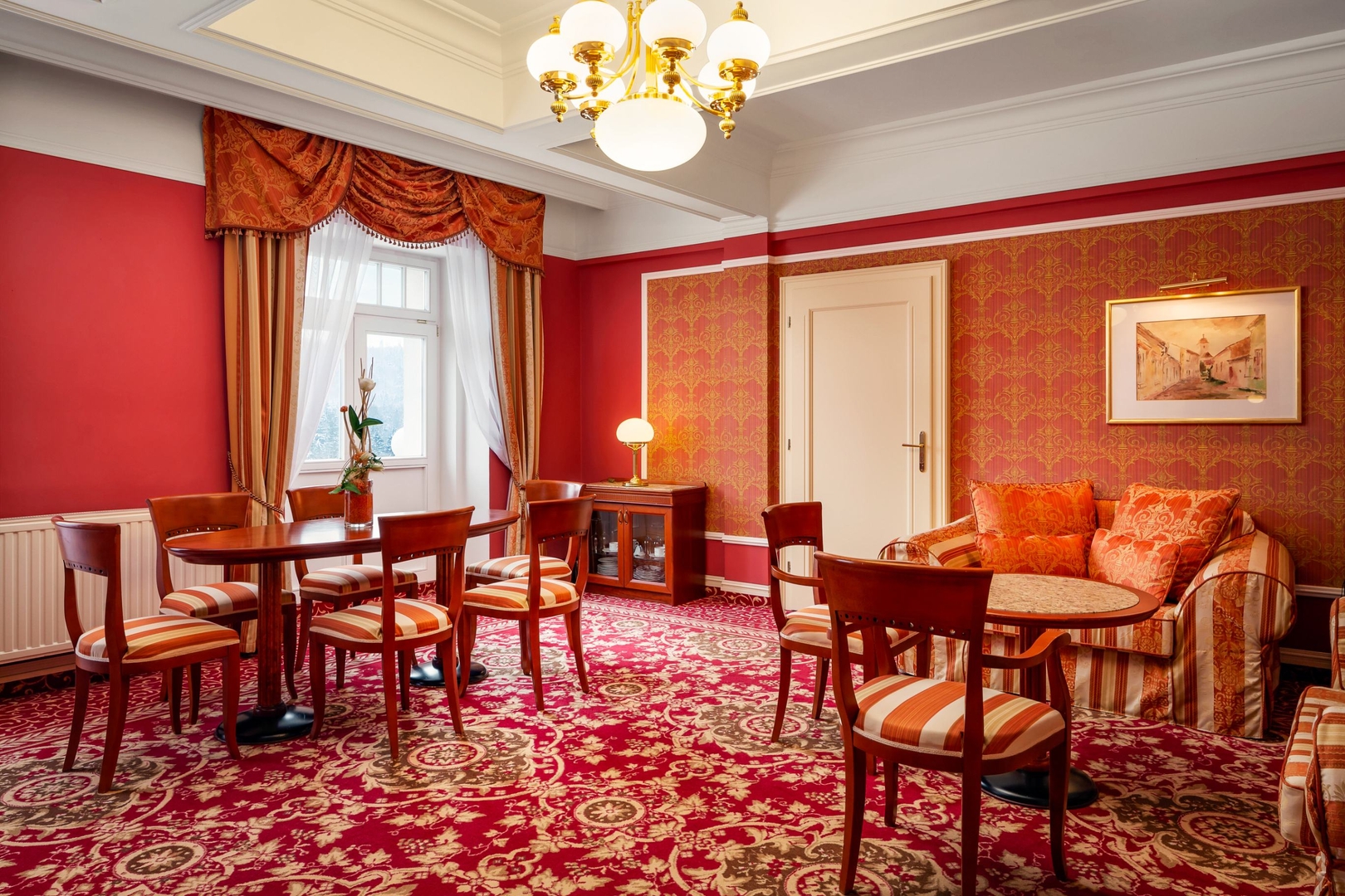 Автостоянка (20 EUR/ніч, 80 місць, станція зарядки електромобілів – 600 CZK; або безкоштовно на парковці sanatoriums.com за запитом і за наявності місць, 500 м від готелю).