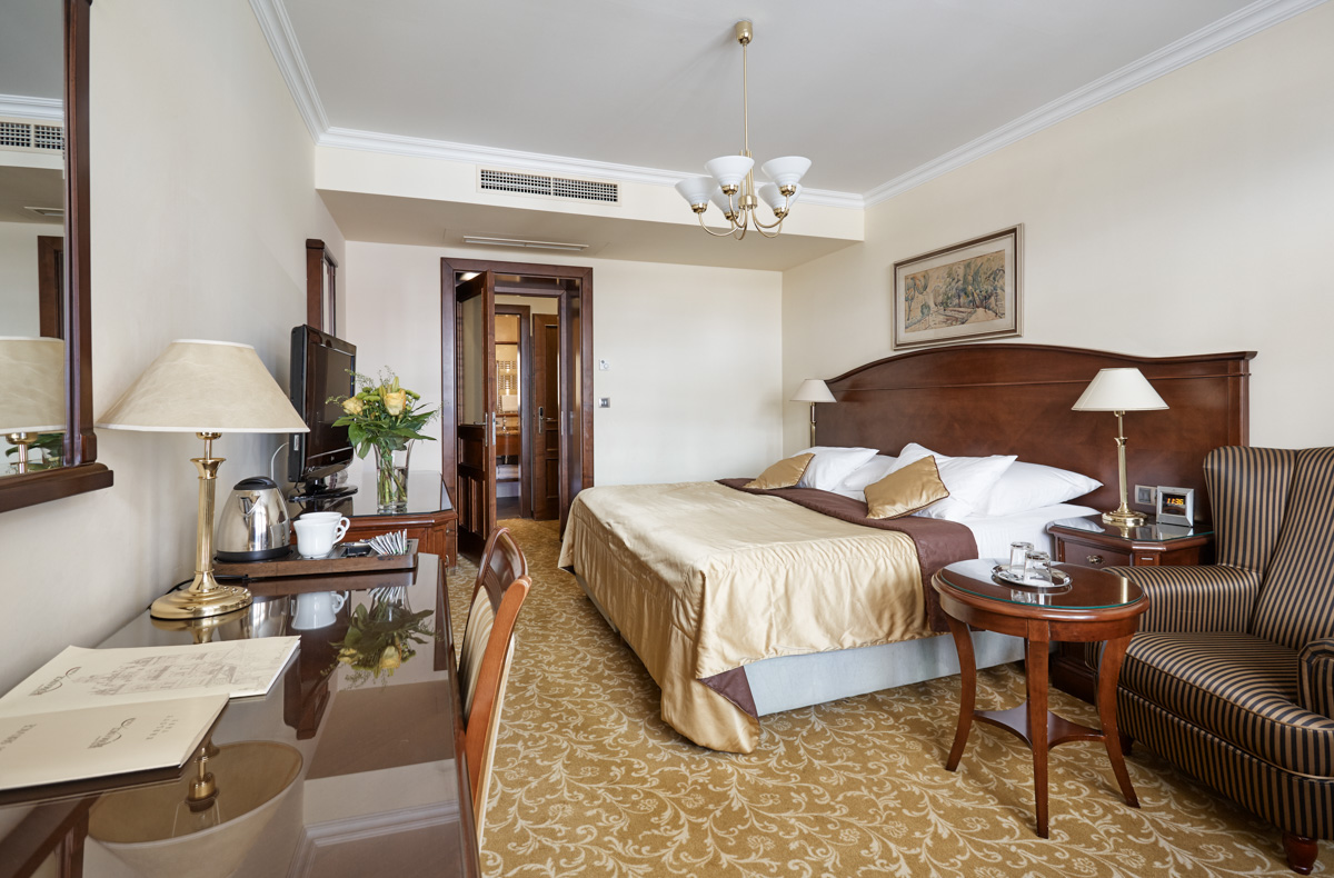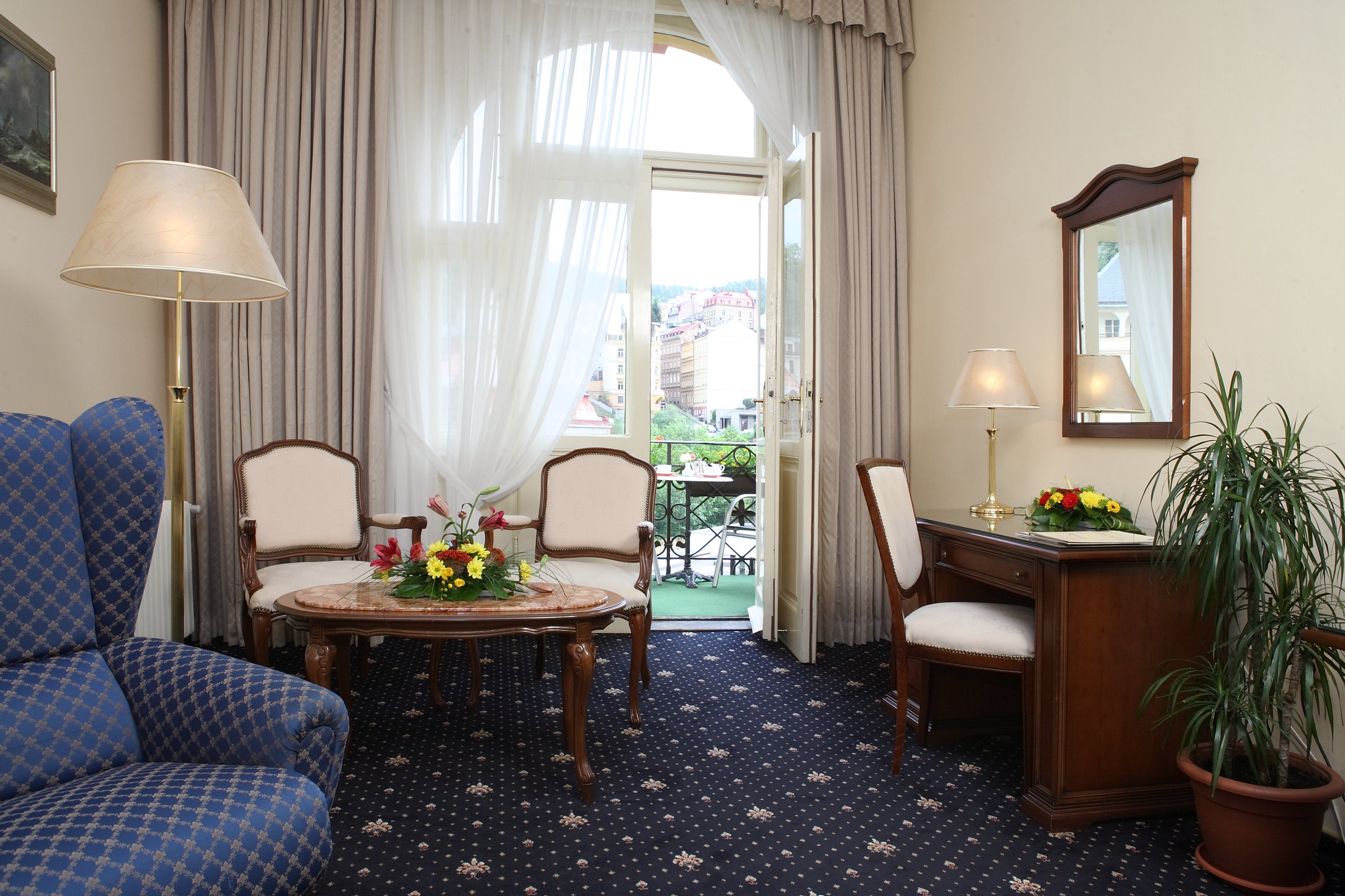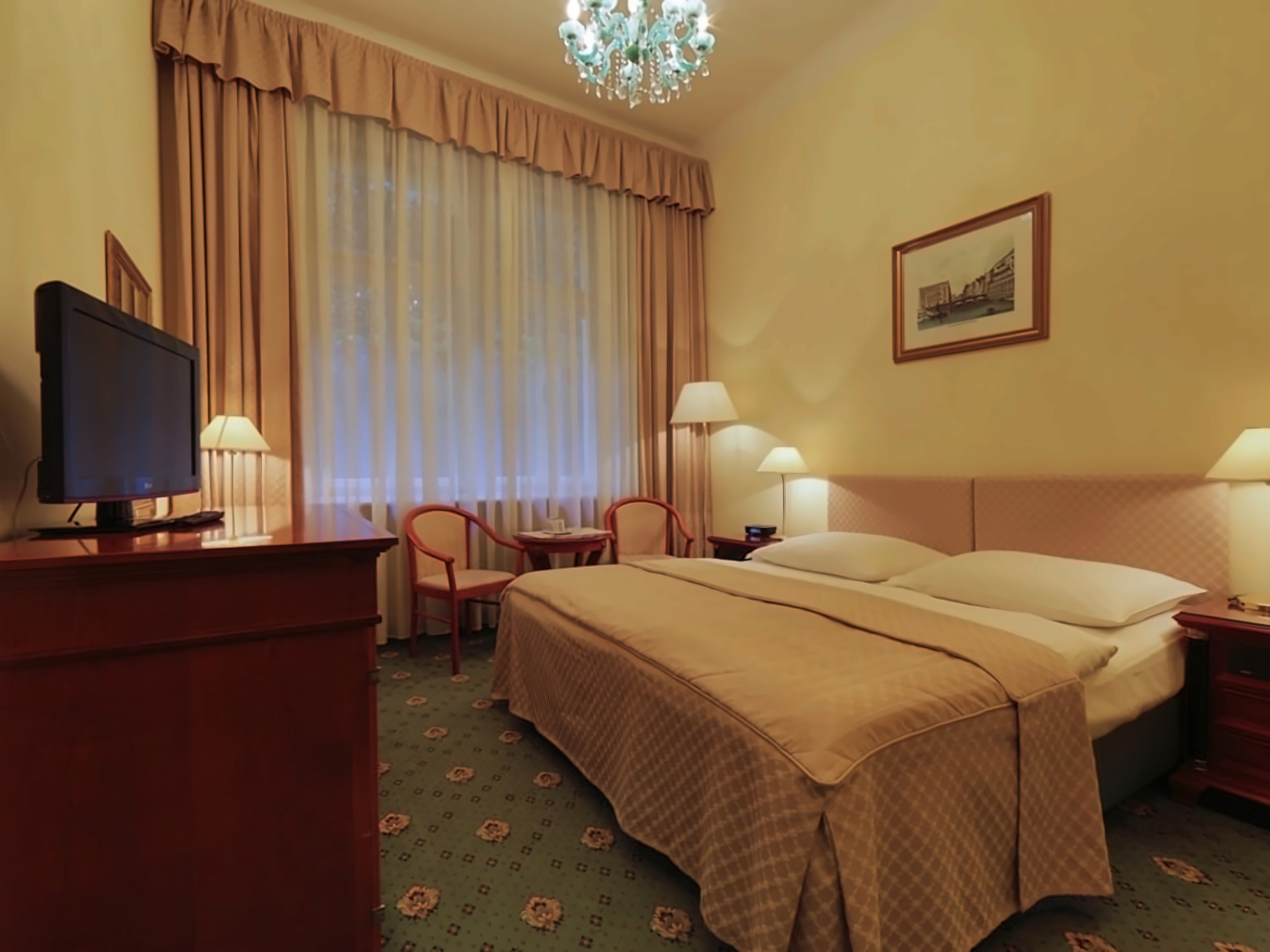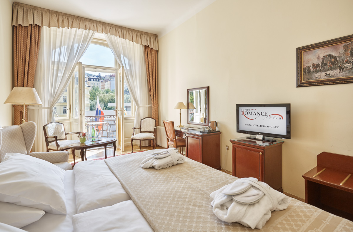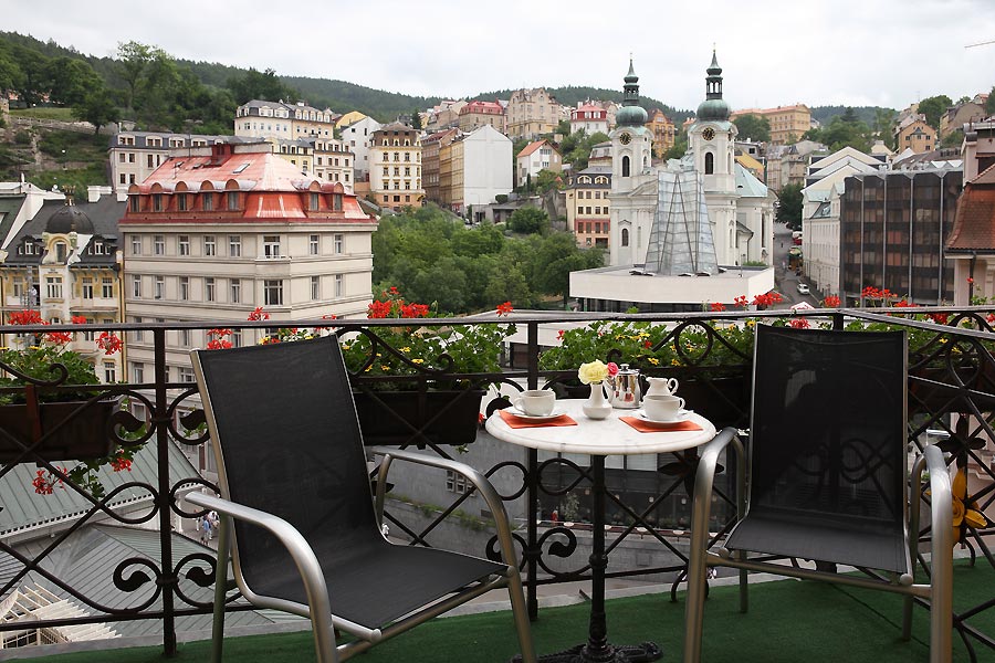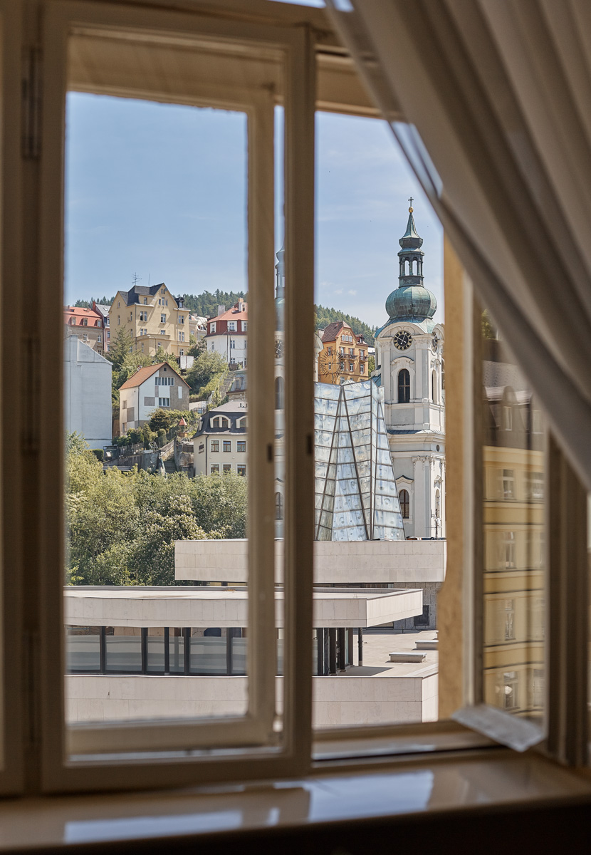 По заїзду мінеральна вода у номер одноразово безкоштовно. Вид на курортний Променад, Гейзерну колонаду, Замкову Вежу та інші історичні будівлі.
