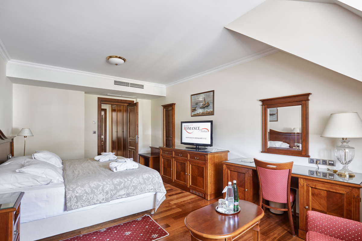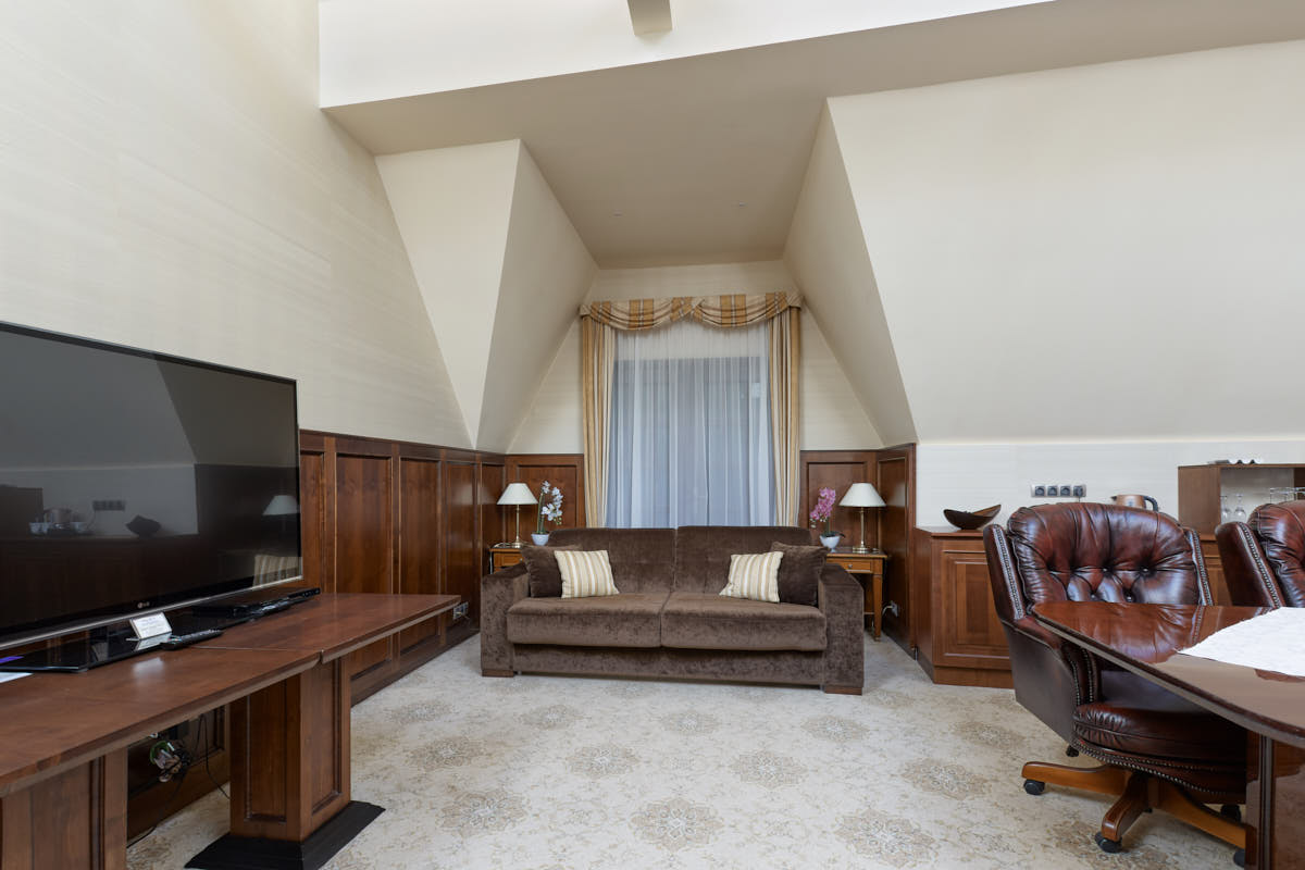 Номер розташован на мансарді. По заїзду мінеральна вода у номер одноразово безкоштовно. Дві кімнати .