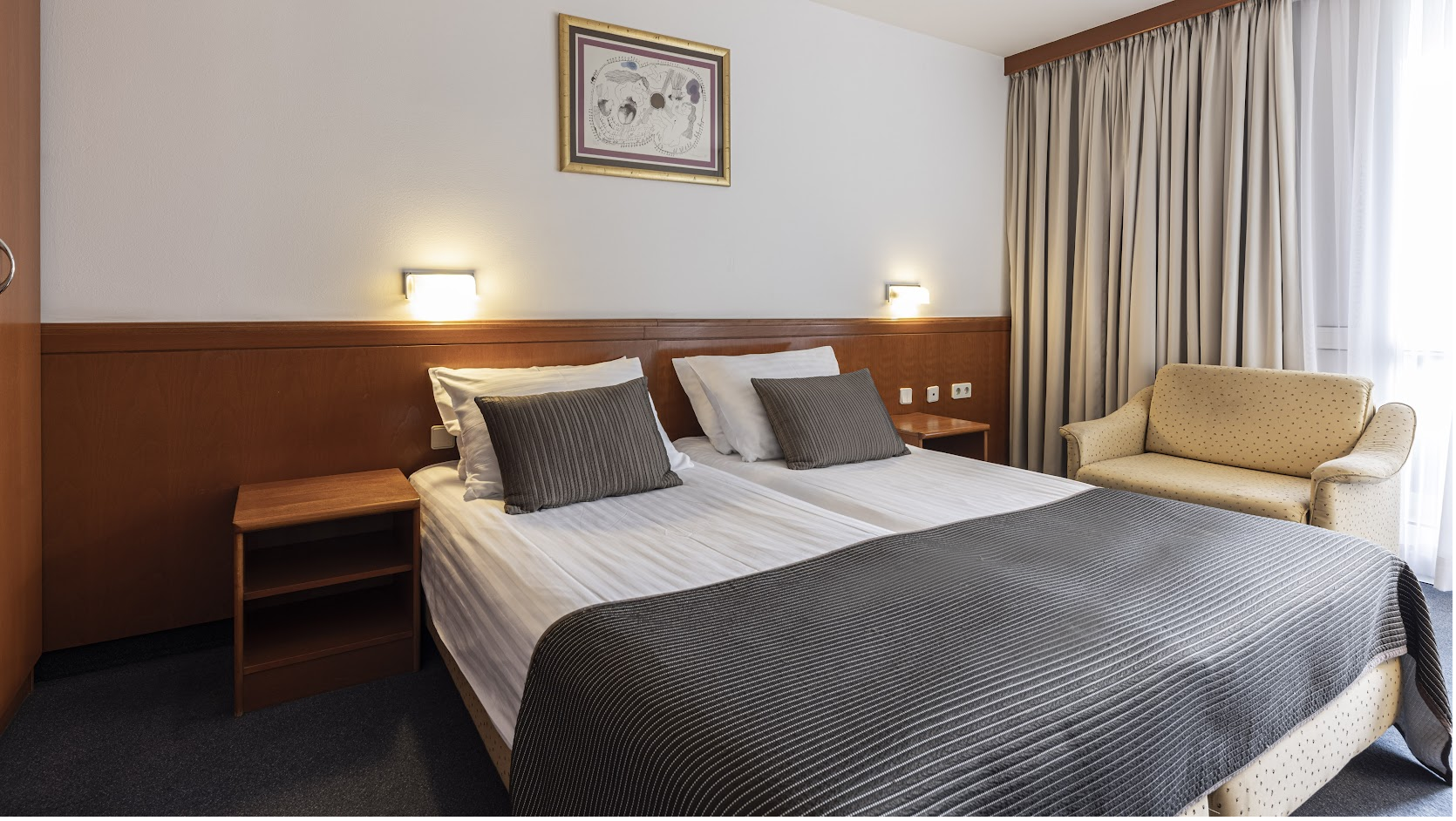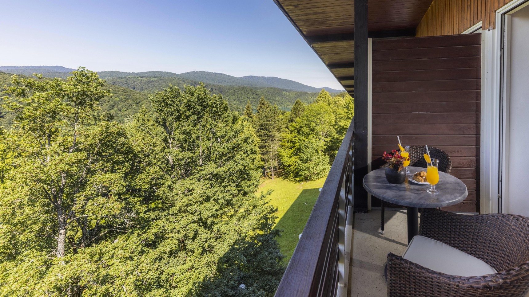 Готель розташований прямо в Національному парку Плитвицькі озера, недалеко від озера Козьяк та одного з входів до парку. Це один із найзручніших варіантів, якщо туристи хотять жити в самій природній зоні і гуляти озерами прямо з готелю.
