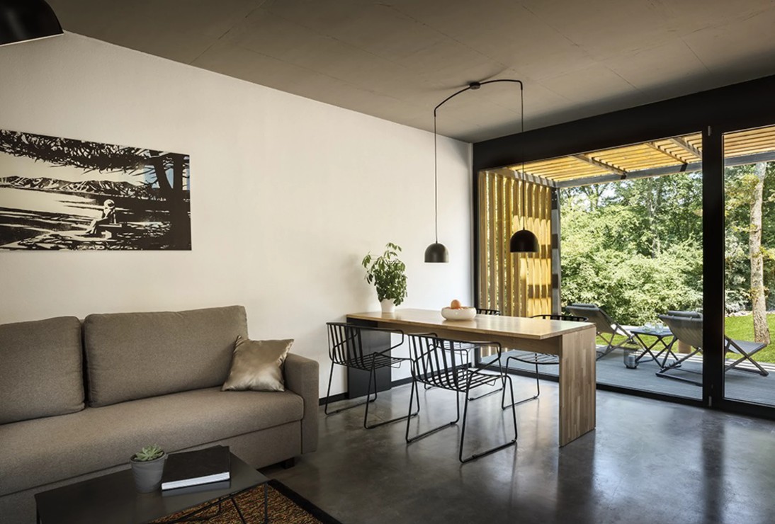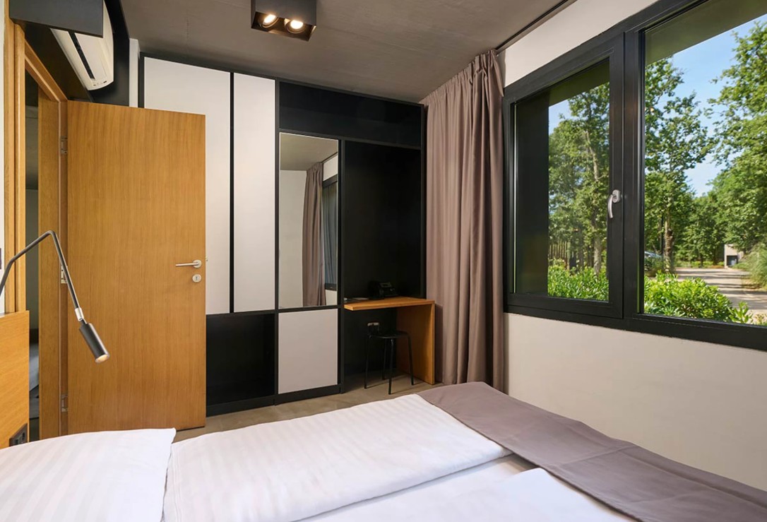 45 м², макс. 5 дорослих + 1 дитина (до 11,99 років) або 4 дорослих + 2 дітей (до 11,99 років), 2 спальні - обидві з двоспальним ліжком, ванна кімната з душем, вітальня з повністю обладнаною кухнею, тераса (15 м²) зі столом, 4 стільці (18 м²) з 2 шезлонгами, кофеварка Nespresso, електричний чайник, кондиціонер.