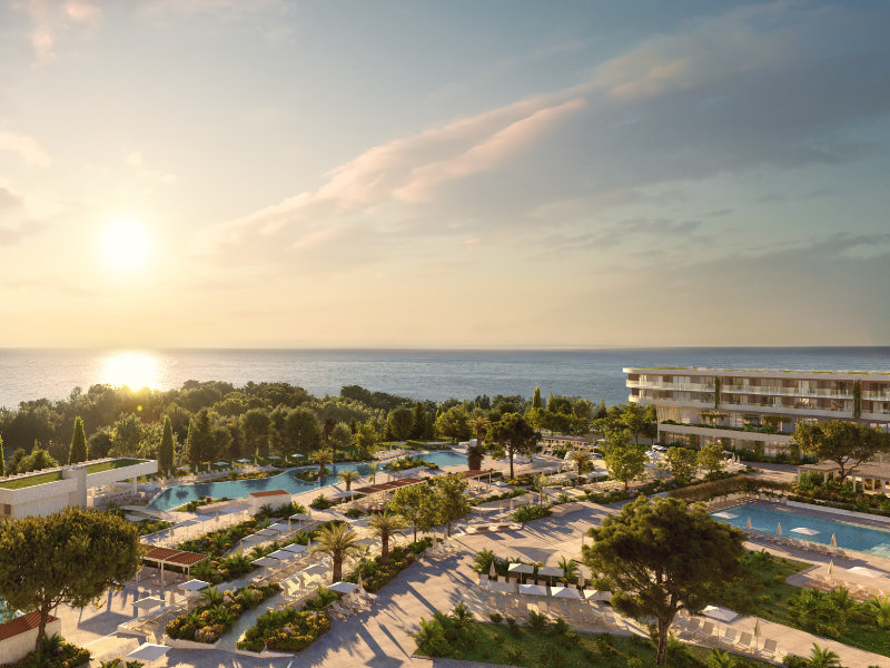 Стильний басейн Infinity біля моря з захоплюючим видом на старе місто Пореч.