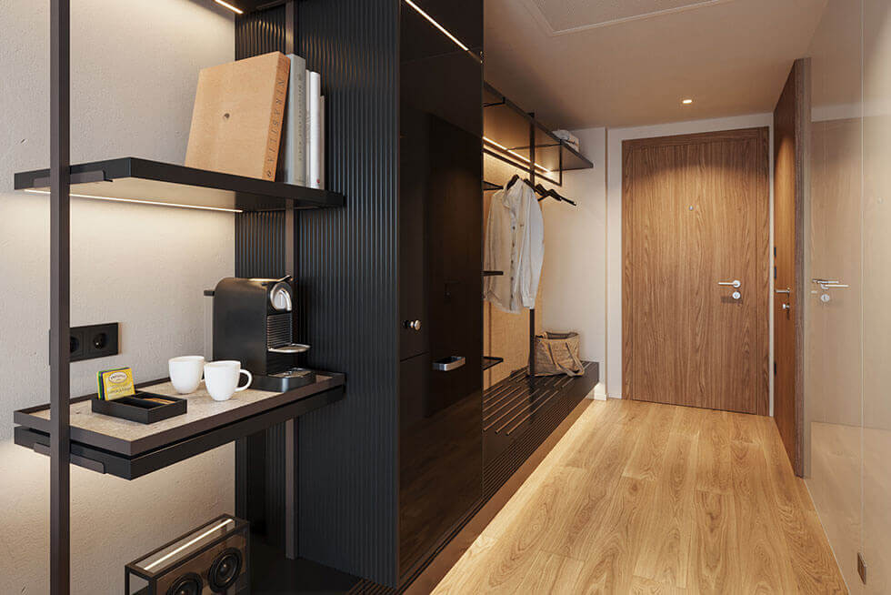 Технології: система Smart Room, дисплей керування освітленням, iTV, 55-дюймовий плоский телевізор, саундбар та портативний телефон