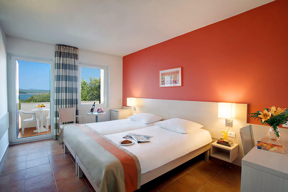 У номері 2 односпальні ліжка. Номер має боковий вид на море.