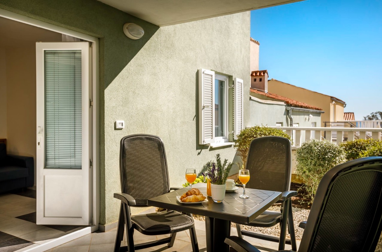 Однокімнатний стандартний номер має двоспальне ліжко та додаткове крісло-ліжко для однієї особи. Вони мають кухню та терасу/балкон, тому ідеально підходять для розміщення до трьох осіб.