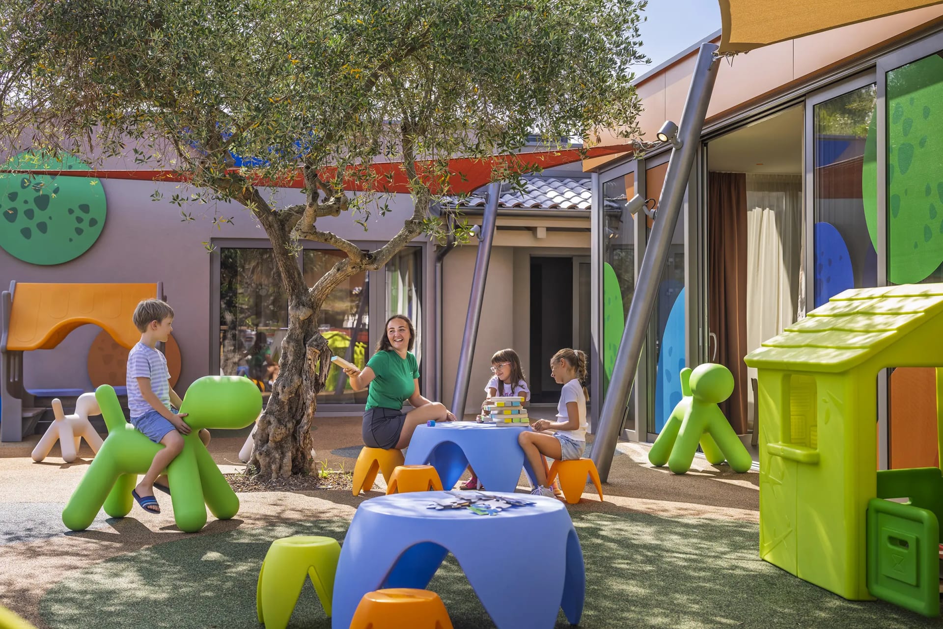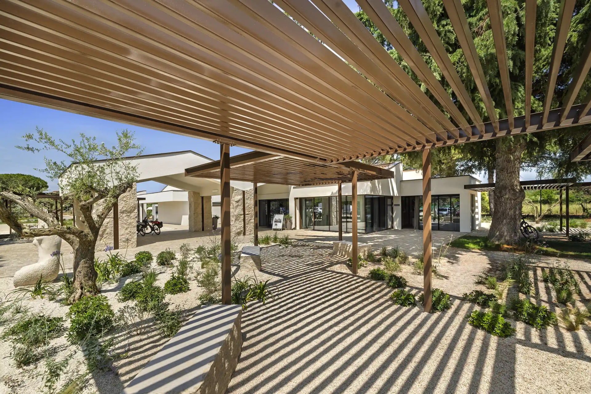 Прості та комфортабельні номери мають ванну кімнату та балкон, де можна насолодитися відпочинком на свіжому повітрі в оточенні оливкових дерев та лісу.