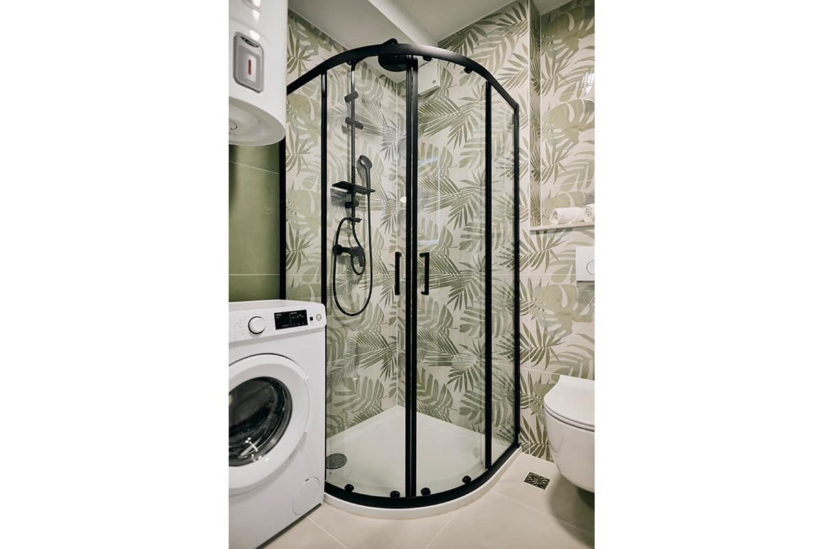 Елегантна та функціональна кухня містить холодильник з морозильною камерою, посудомийну машину, духовку, електричну плиту, чайник та основне кухонне обладнання, пральну машину в окремій зоні та їдальню, розраховану на 4-6 осіб.