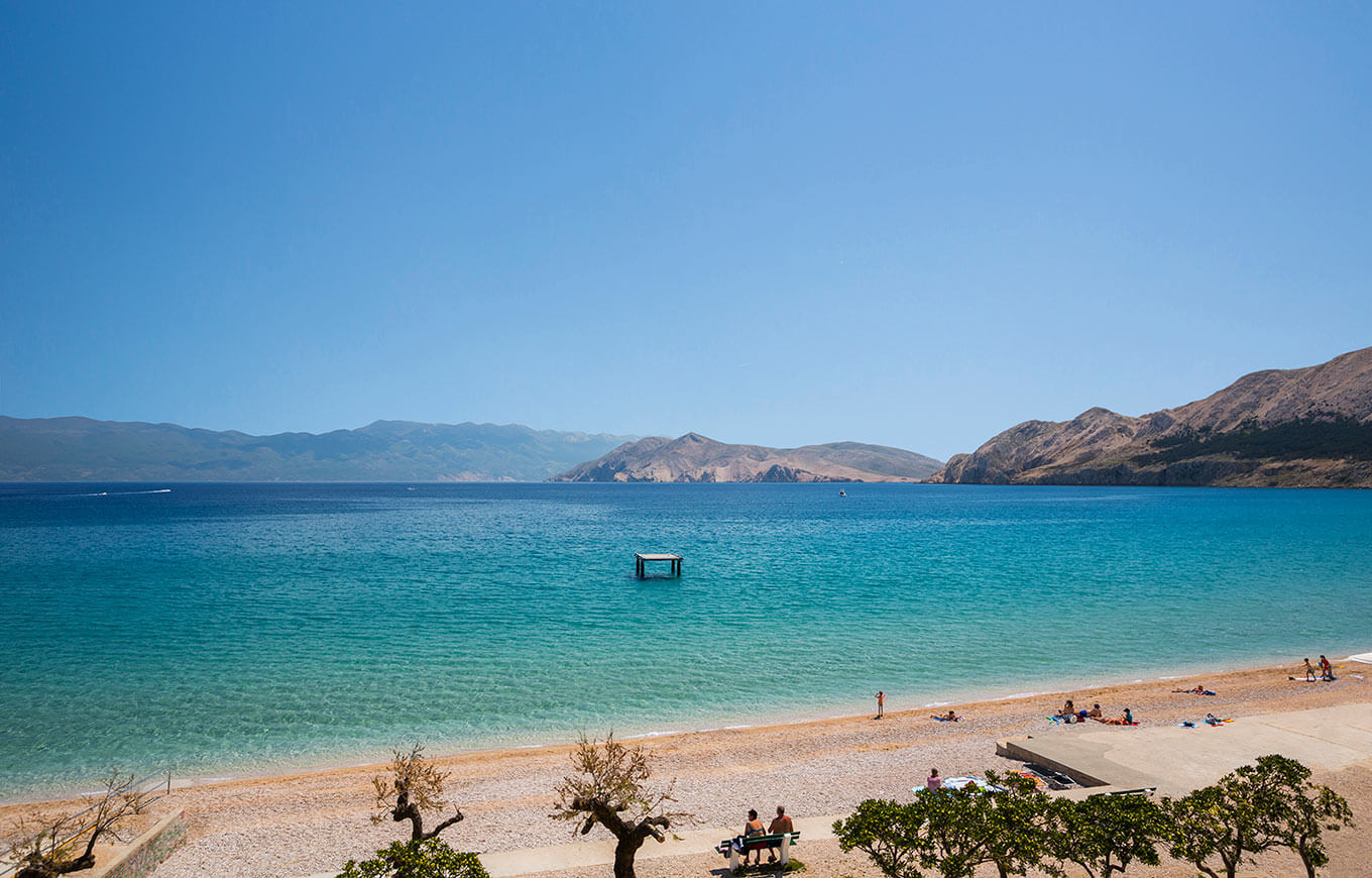 Розташований на о. Крк, поруч з пляжем, та за 300 м від центру міста Башка.