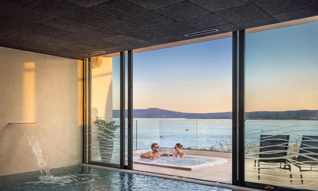 На верхньому поверсі готелю розташований ексклюзивний wellness-центp: панорамний басейн із підігрітою водою, джакузі на терасі, сауна та парова баня, фітнес-зал. Прекрасне місце для релаксу з видом на море.