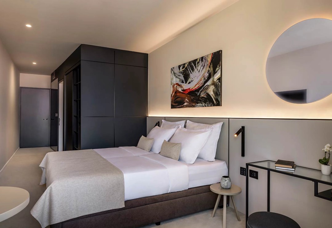 Готель налічує лише 40 дизайнерських номерів, більшість із яких мають балкони з видом на море. Інтер’єр поєднує сучасність із якісними матеріалами та комфортом.