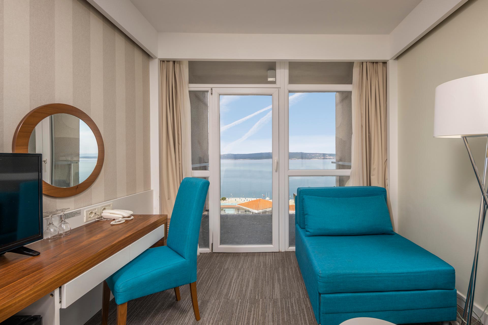 Готель налічує приблизно 150-180 номерів різного типу — від стандартних кімнат до сімейних апартаментів. У всіх передбачені кондиціонер, власна ванна кімната, супутникове ТБ, більшість кімнат мають балкон з видом на море або парк.
