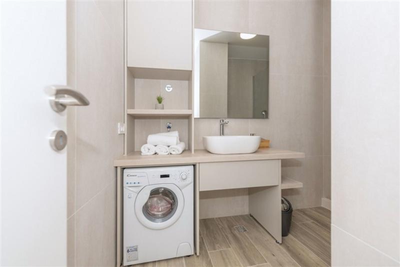Кондиціонер, Інтернет, 2 ванні кімнати з душем, фен, посуд і столові прибори, плита, холодильник, морозильна камера, мікрохвильова піч, кавоварка, електрочайник, пральна машина, постільна білизна, тераса, прибирання - по прибуттю.