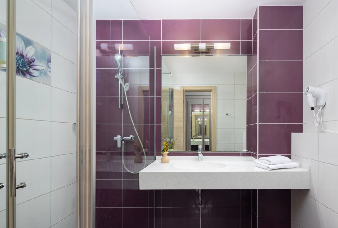 Двоспальне ліжко/двоспальне ліжко, ванна кімната з душем.