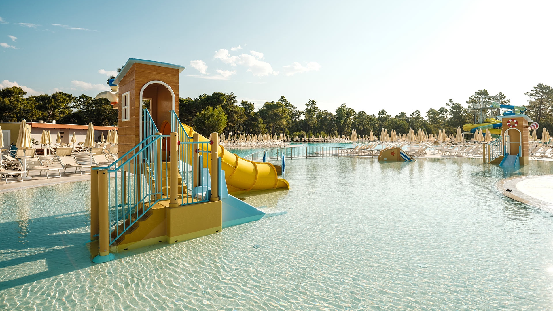 Комплекс басейнів площею 2 500 м², включаючи дитячий басейн площею 300 м² з 4 захоплюючими атракціонами та 2 водними гірками.