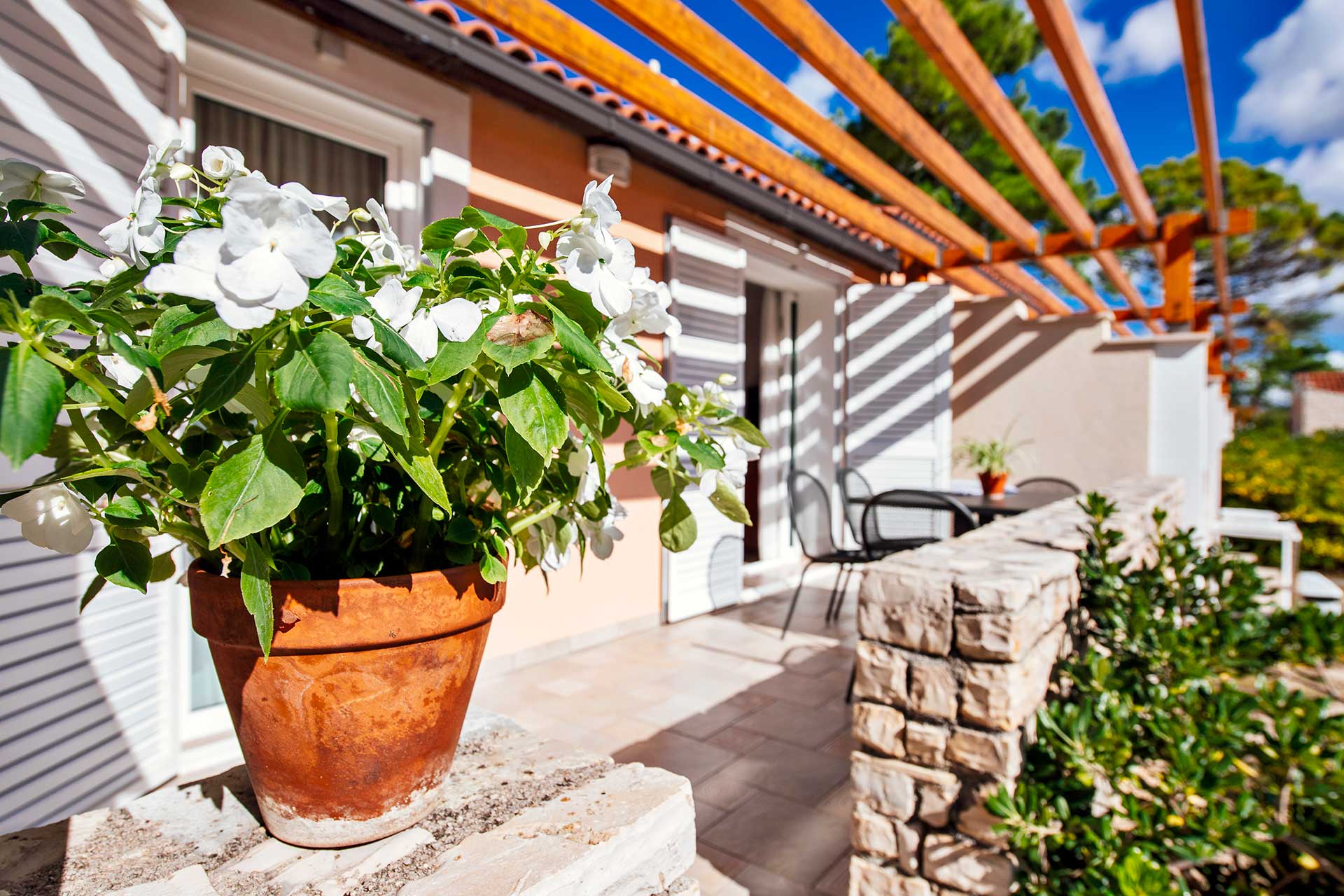 1 спальня з двоспальним ліжком, 1 спальня з двома односпальними ліжками, 1 ванна кімната,  вітальня з розкладним диваном на 1 особу. Обладнання: кавоварка, посуд, сушарка для сушіння одягу, вуличні меблі на терасі. Постільна білизна, рушники, набір необхідних засобів для прибирання.