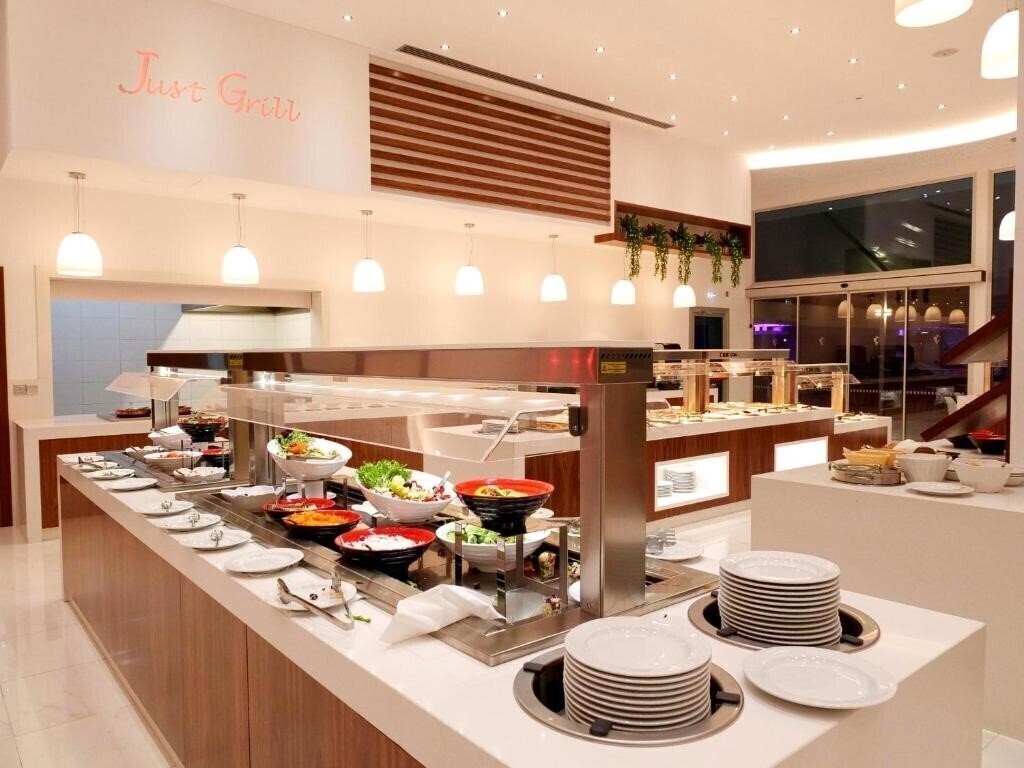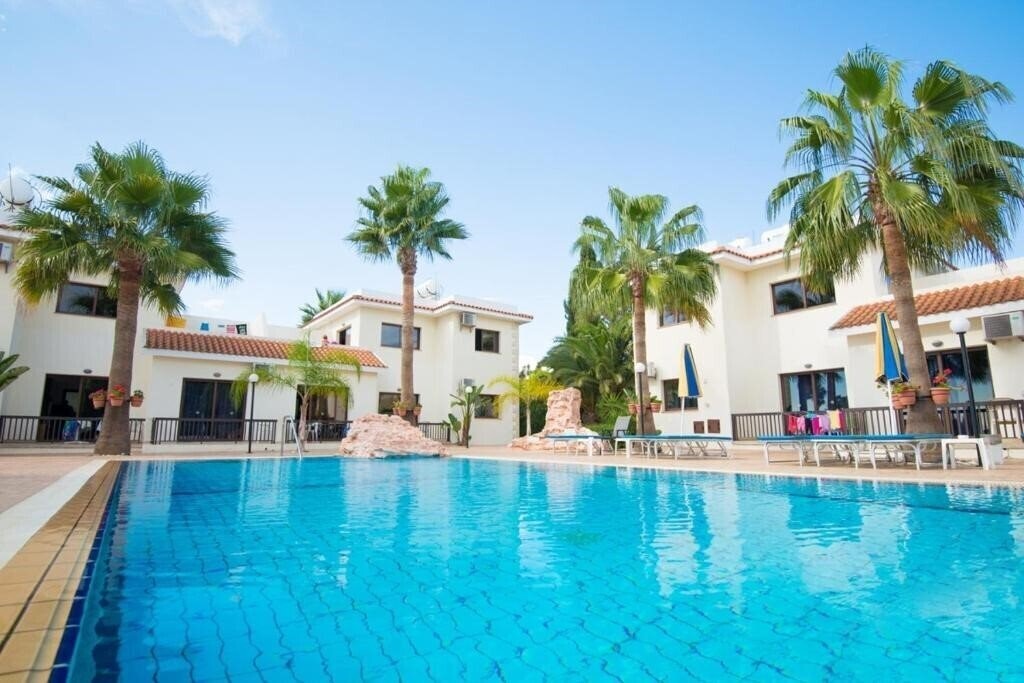 Цей готель пропонує відпочинок на березі моря з панорамними видами на Середземне море. Головний ресторан радує різноманітним меню: тут подають сніданок, обід та вечерю у форматі шведського столу з тематичними вечорами, присвяченими середземноморській, кіпрській, італійській та латиноамериканській кухні. Відкрита тераса біля басейну створює приємну атмосферу для трапезу. У басейну працює бар, де протягом дня можна перекусити місцевими закусками та скуштувати екзотичні коктейлі. Для повного розслаблення у спа-зоні пропонують різні масажі та косметичні процедури, а також критий басейн із гідромасажною ванною. Любителі активного відпочинку оцінять сучасний тренажерний зал із найновішим обладнанням.