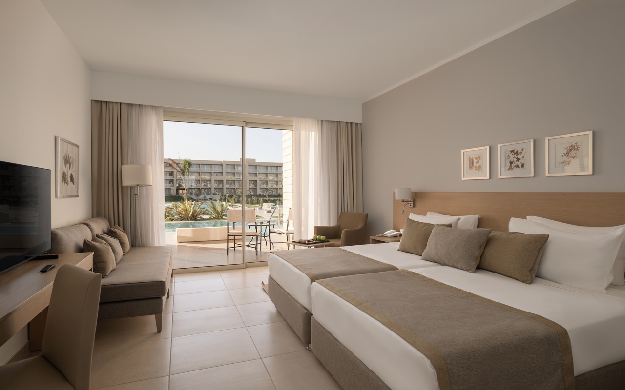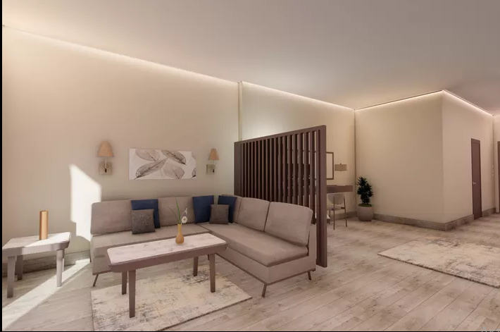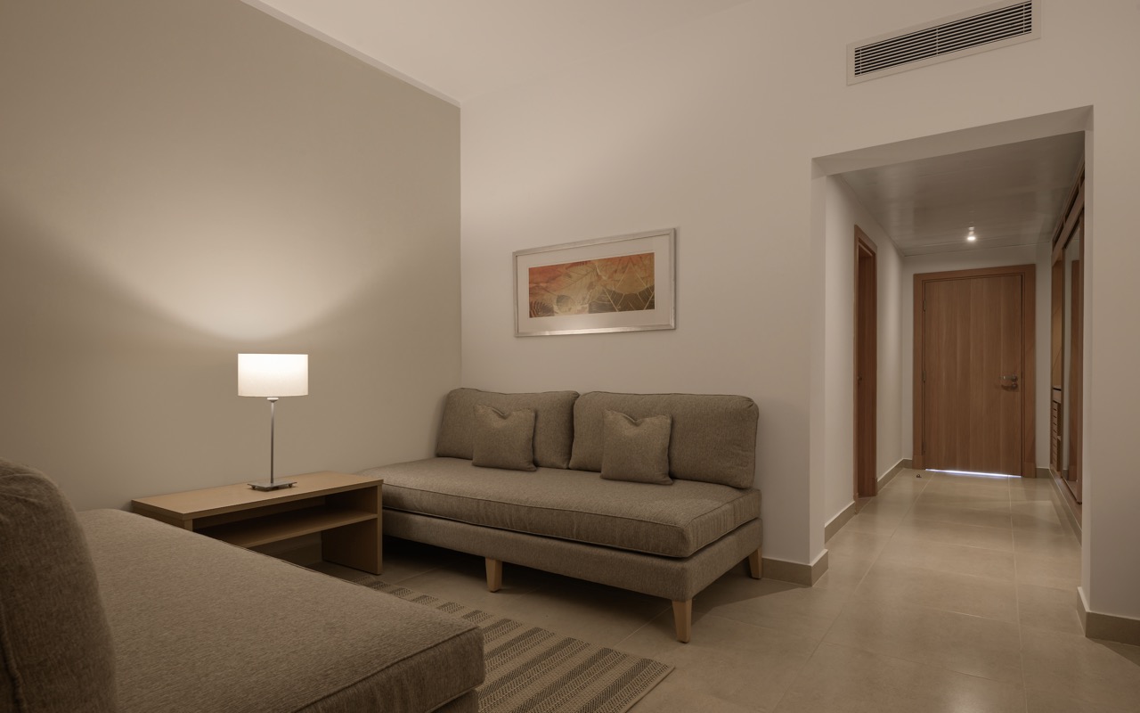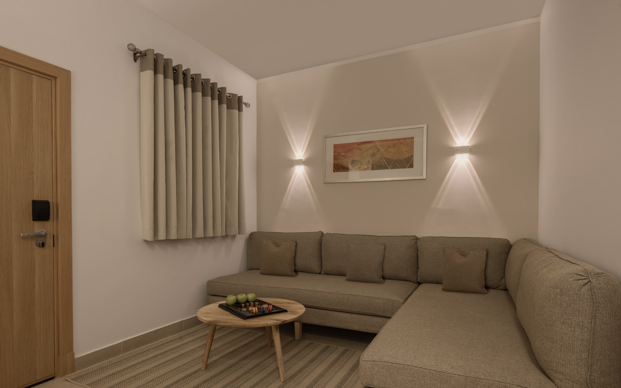 Двокімнатний номер. В номері двоспальне ліжко або 2 односпальних, дві софи, ванна кімната з душем, балкон або тераса.