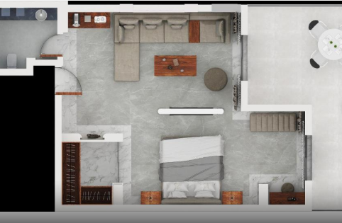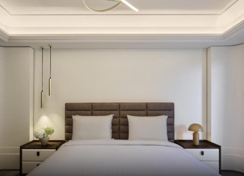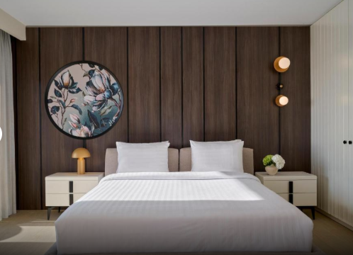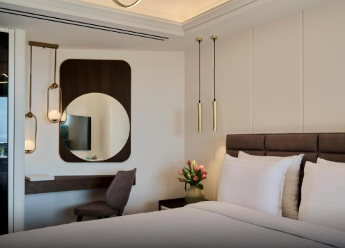 Люкс має простору спальню з двоспальним ліжком розміру «king-size», доповнену сучасним декором та вікнами від підлоги до стелі, які наповнюють кімнату природним світлом. Вітальня, розроблена для відпочинку, включає зручні місця для сидіння та оформлена в теплих, затишних тонах.
