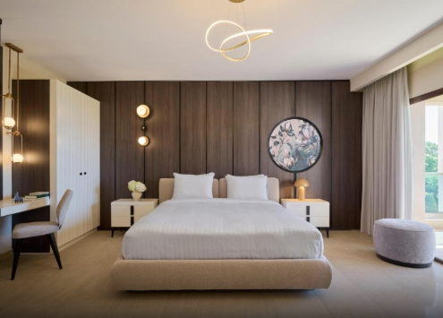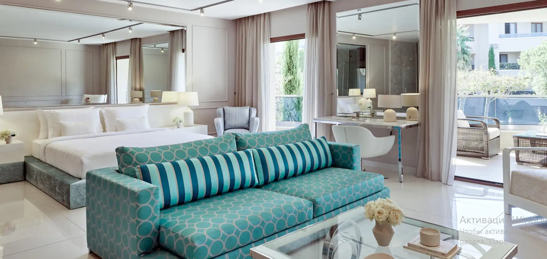 Розроблений з урахуванням потреб сімей, люкс «Аріадна» є частиною нашої колекції люксів для сімейного відпочинку, пропонуючи практичну розкіш та продумані деталі для всіх вікових груп. Гості можуть насолоджуватися преміальними зручностями, включаючи два смарт-телевізори, простору ванну кімнату з душовою кабіною та гардеробну, що забезпечує комфорт та зручність.Розташований у тихих садах курорту, цей люкс пропонує спокійне та мальовниче місце для відпочинку, зберігаючи при цьому легкий доступ до готельних зручностей світового класу.