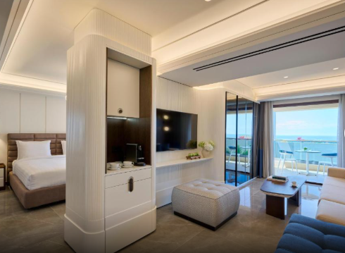 Кожен люкс має власний балкон з видом на пишні ландшафтні сади абобічні морські краєвиди, що дозволяє насолоджуватися спокійною атмосферою. Оформлені в сучасному стилі з використанням м'яких нейтральних тонів, люкси створюють затишну та заспокійливу атмосферу.