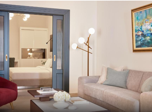 Розкішні сімейні люкси з однією спальнею на Халкідіках пропонують комфортне житло площею 59 м², розроблене спеціально для сімей. Ці люкси мають окрему вітальню та спальню, що забезпечує приватність та відпочинок під час вашого перебування.