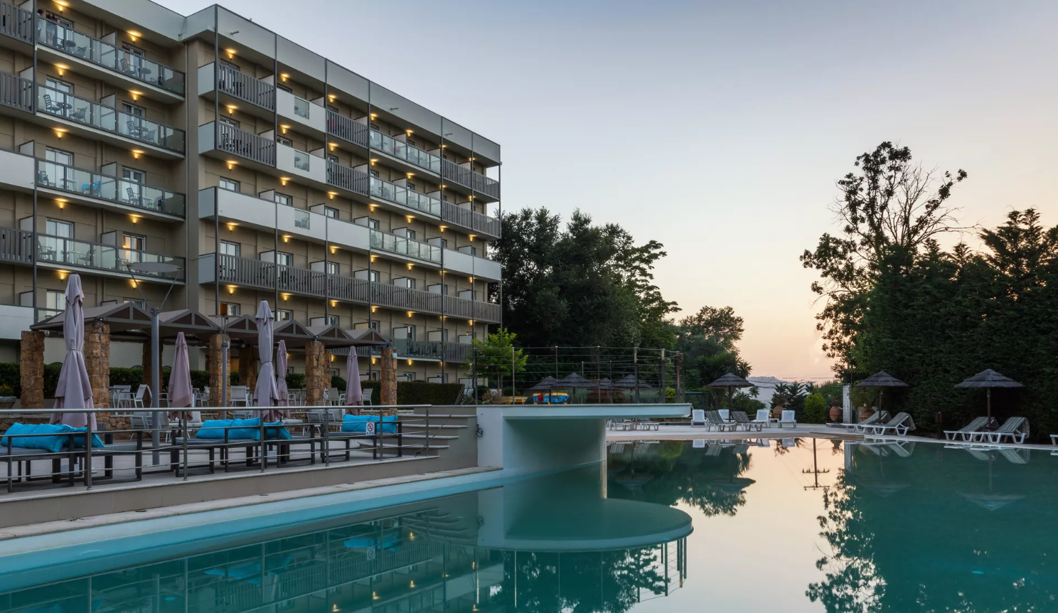 Ви можете насолоджуватися обідом у ресторані, барах, лаунжі та панорамній терасі; поніжитися на сонці біля басейну (відкритий з травня по жовтень з окремим дитячим басейном) або в саду.
