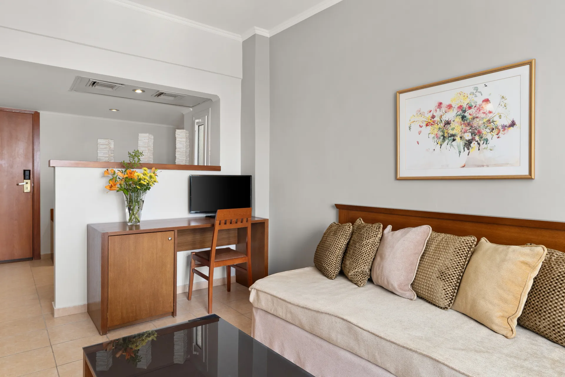 Люкс готелю Ariti Grand пропонує всім гостям найвищу вишукану розкіш. Він розташований на 6-му поверсі нашого готелю та має одну спальню з двоспальним ліжком розміру "king-size", чудову вітальню з двома диванами-ліжками, сучасну ванну кімнату з ванною та комфортний балкон з красивими меблями та захоплюючим видом на озеро.