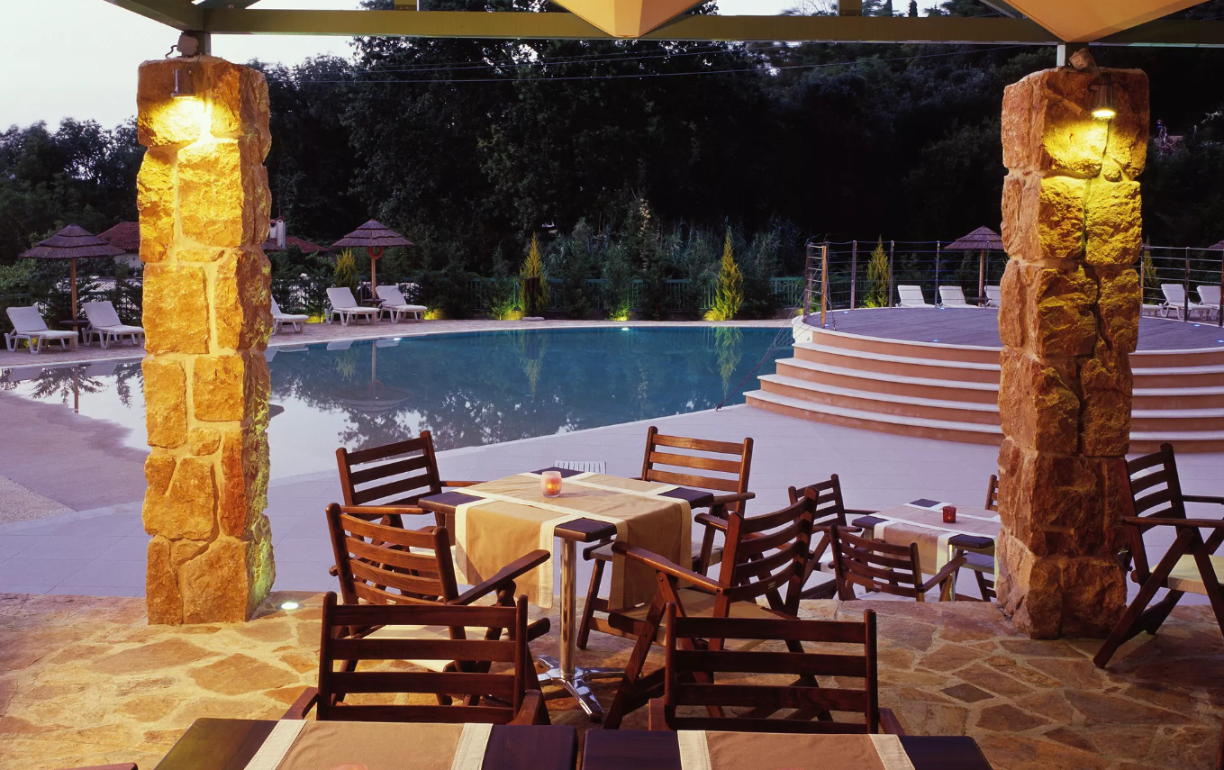 Бар біля басейну працює з 11:00 до 20:00, пропонує закуски та прості страви: сендвічі, бургери, салати, пасту, піцу, десерти та напої.