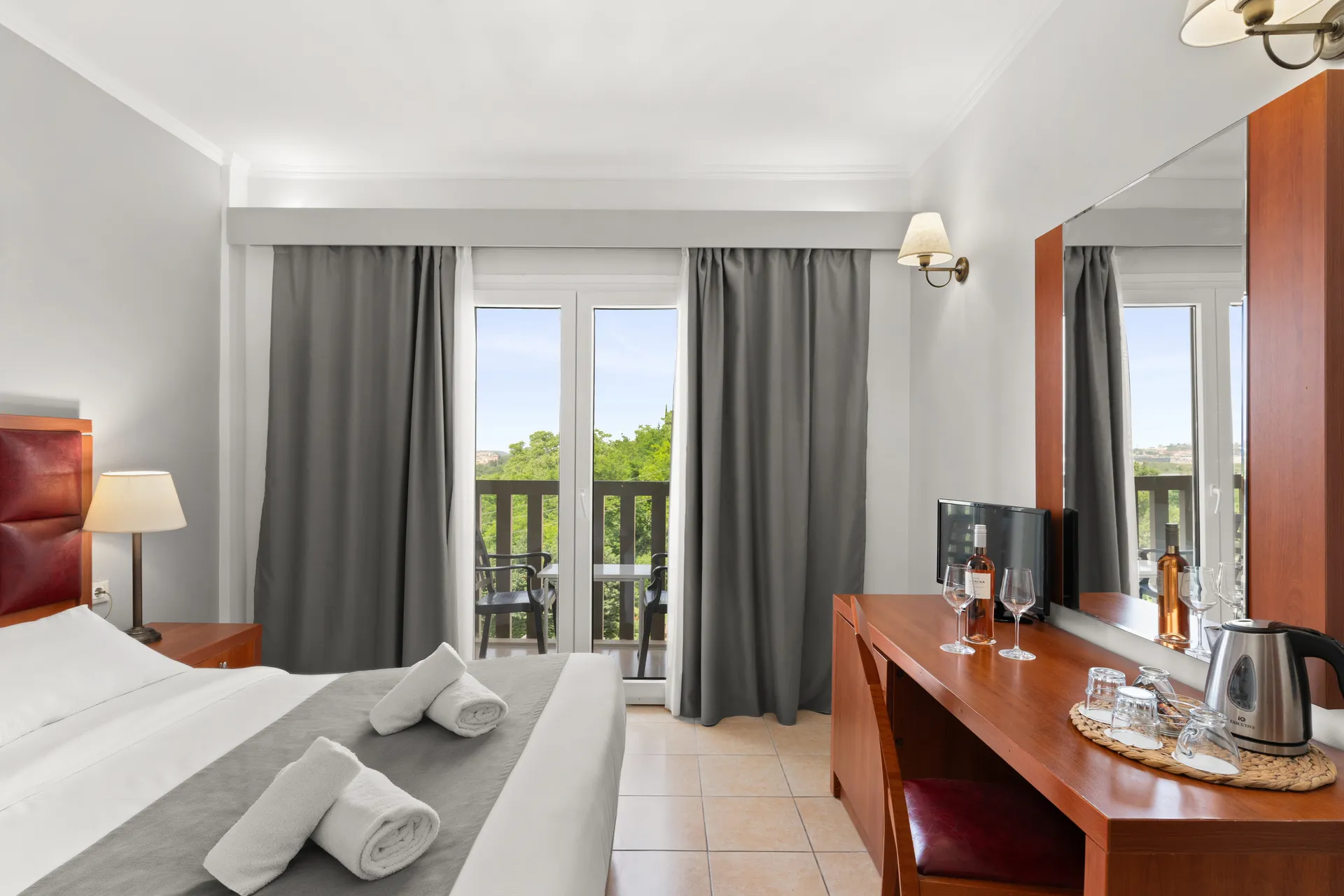 У номері є мебльований балкон з видом на озеро Халікіопулос та сучасна ванна кімната з ванною.