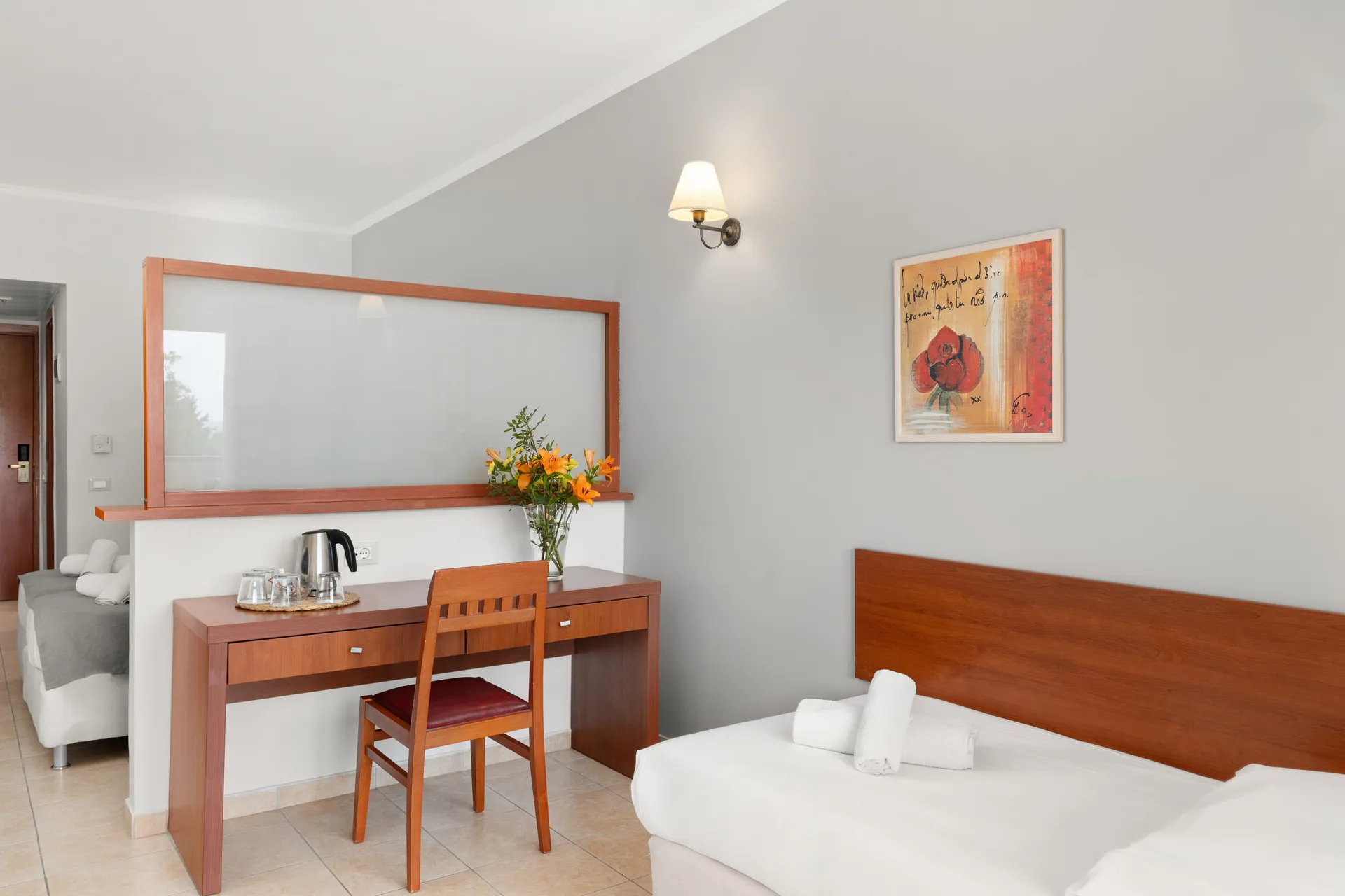 У номері є мебльований балкон з видом на гори або наш басейн та сучасна ванна кімната з ванною.