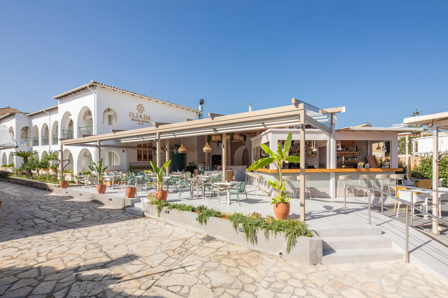 Iliada Beach - це невеликий готель сімейного типу, який складається з двох корпусів, оточених квітучими клумбами.