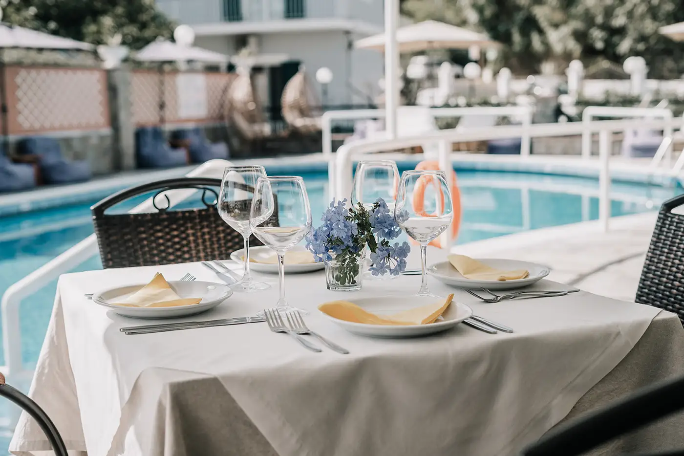 Протягом дня гості можуть відпочивати біля басейну, де доступні напої та легкі закуски. Зона біля басейну також підходить для сніданку на відкритому повітрі.